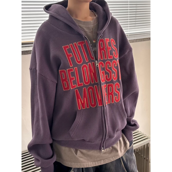韓國 FUTURES 高級 華夫格 立體 刺繡 短版 雙向拉鍊 連帽外套 (3c...