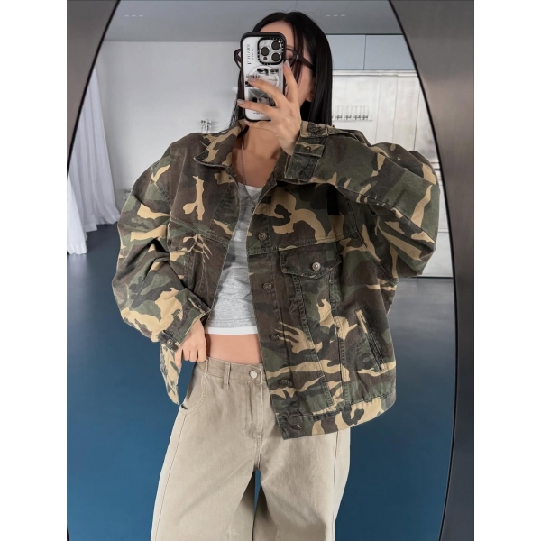韓國 CAMO 迷彩 工裝感 雙口袋 重磅 立體 硬挺 外套 夾克 (2colo...