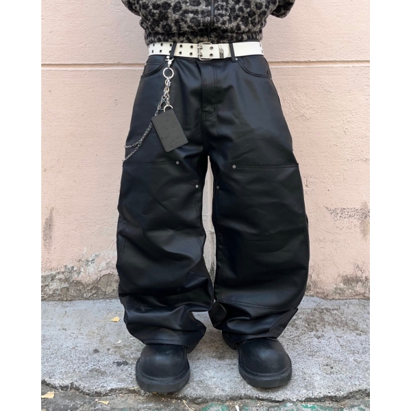Cause closet 上蠟 光澤 剪裁 設計感 立體 硬挺 寬版 皮褲