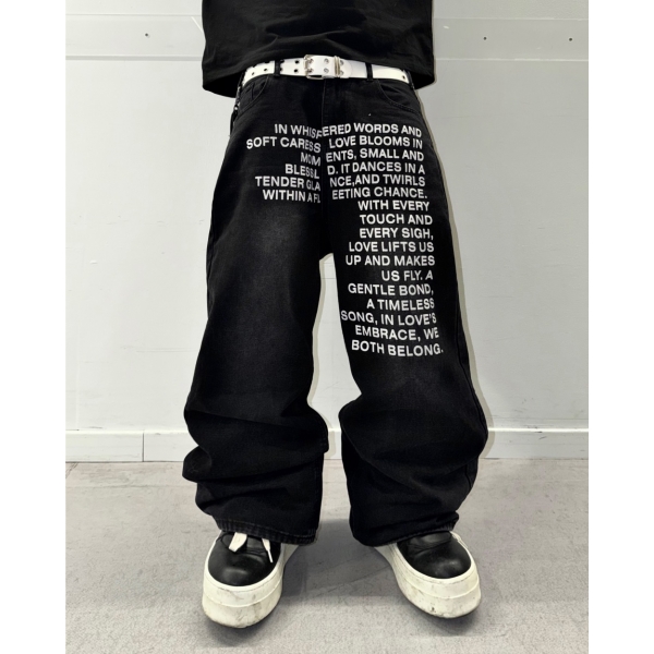 Cause closet 排列 文字 設計感 水洗 寬版 牛仔褲 (2color...