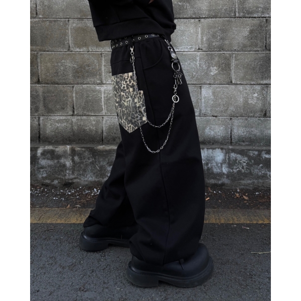 Cause closet 豹紋 拼接 口袋 造型 素色 寬版 棉褲 (3colo...