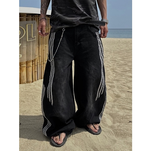 韓國 泥汙 拼接 裁片 做舊感 水洗 寬版 牛仔褲