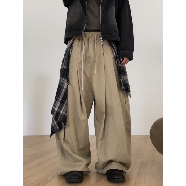 韓國 綁帶式襯衫 設計感 造型 打摺 寬褲 (2color)