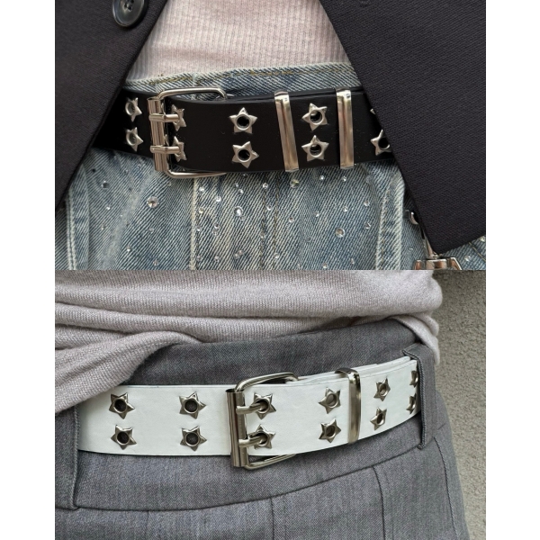 (黑/棕/白現貨) STAR 立體 星星 設計感 雙孔 造型 皮帶 (3colo...