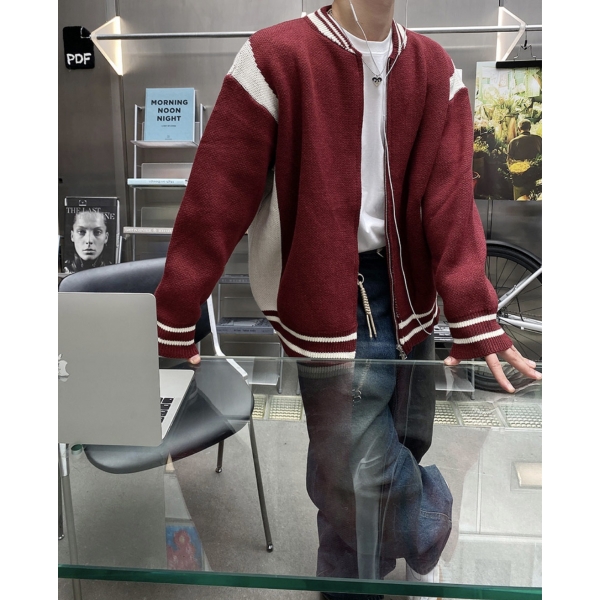 HOLY IN CODE 槍背帶 拼接 拉鍊 針織外套 (3color)
