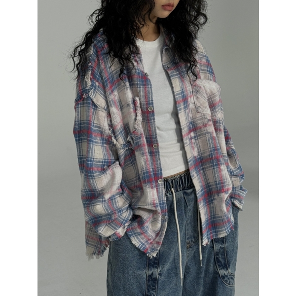 韓國 BOXY 寬短 刀割 多破壞 設計 長袖 上衣 (2color)