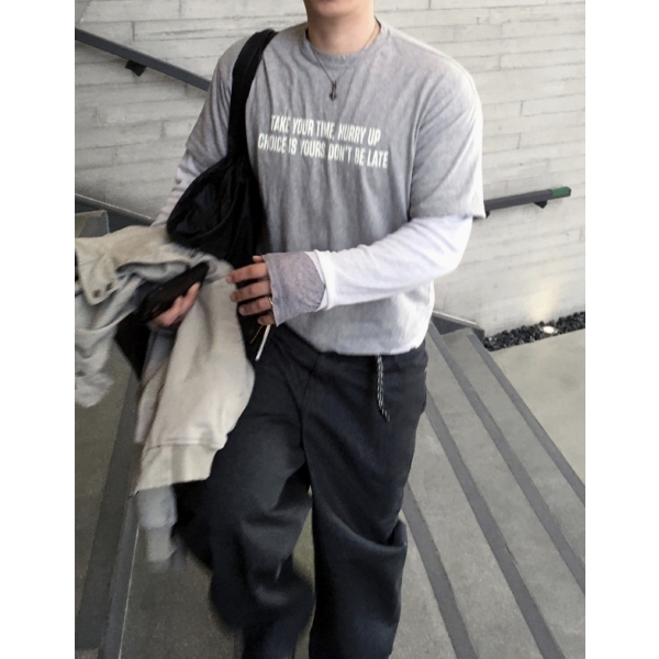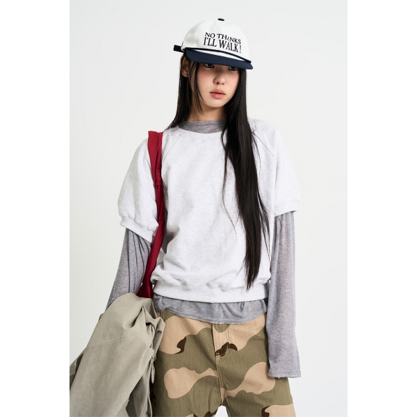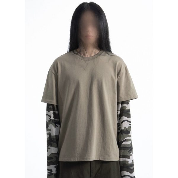 韓國 BOXY 假兩件 設計感 迷彩 素色 短版 長袖 上衣 (3color)