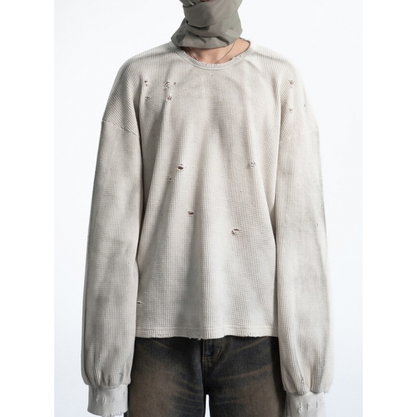 韓國 華夫格 破壞 做舊感 髒髒 短版 長袖 衛衣 上衣 (2color)