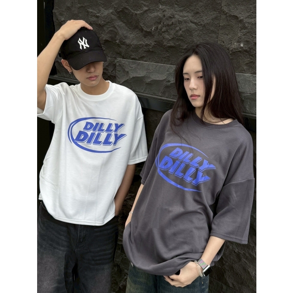韓國 DILLY DILLY 環狀 LOGO 撞色 文字 短T 短袖 上衣 (3...