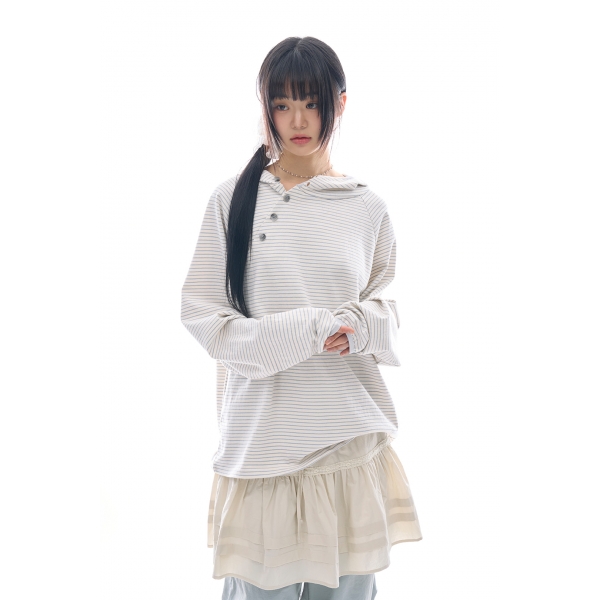 Rauco house 條紋 斜鈕扣 設計感 帽T 長袖 上衣 (3color)...