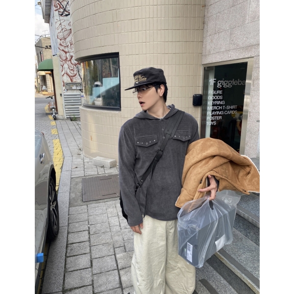 HOLY IN CODE 彈孔 假口袋 按扣 設計 連帽 長袖 上衣 (4col...