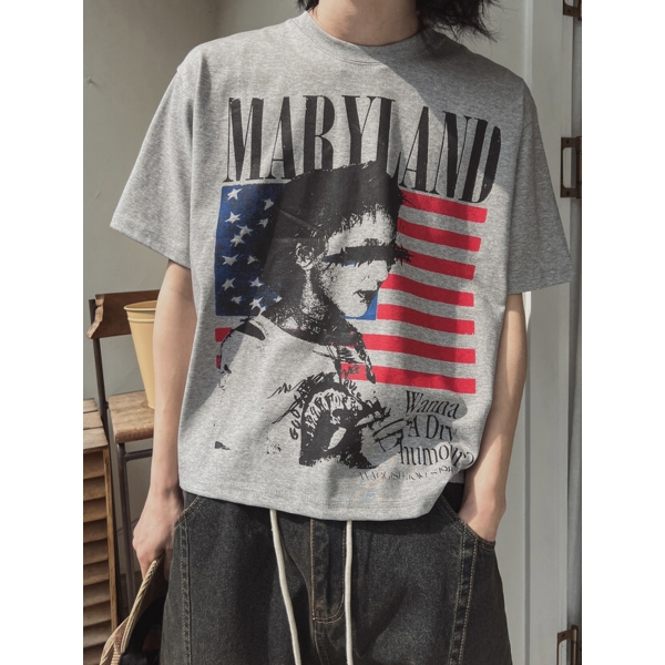 韓國 MARYLAND 復古 人像 國旗 BOXY 短版 短T 短袖 上衣 (3...