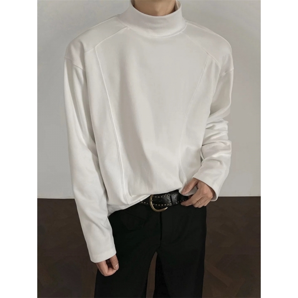 高密度 剪裁 素色 內搭 單穿 小高領 發熱衣 長袖 (3color)