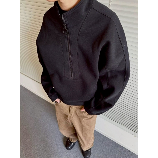弧線 拼接感 設計 半拉鍊 微高領 長袖 衛衣 (2color)