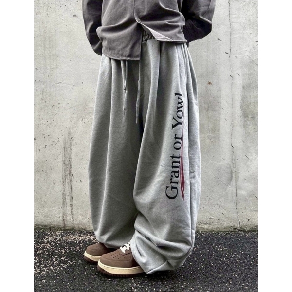 韓國 Grant or Yowl 弧線 立體 打摺 抽繩 寬版 棉褲 (2col...