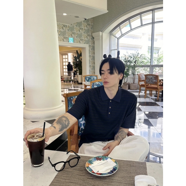 HOLY IN CODE 復古 細條紋 針織 POLO 短袖 上衣 (3colo...