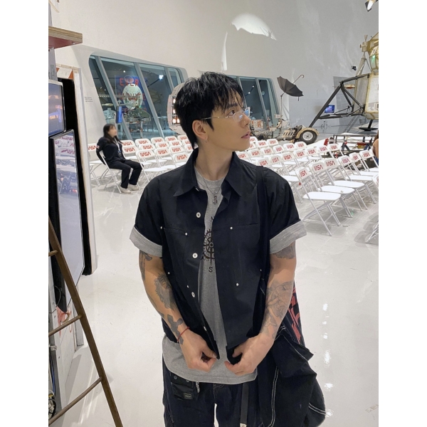 HOLY IN CODE BOXY 鉚釘 短版 襯衫式 鈕扣 短袖外套 (2co...
