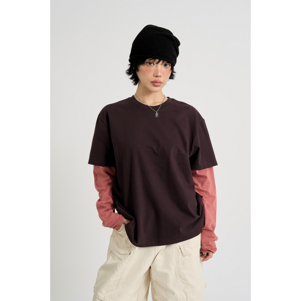 Rauco house BOXY 假兩件 設計感 細條紋 素色 短版 長袖 上衣...