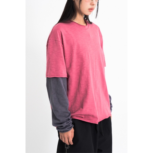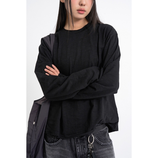 Rauco house BOXY 假兩件 設計感 不收邊 剪裁 素色 短版 長袖...
