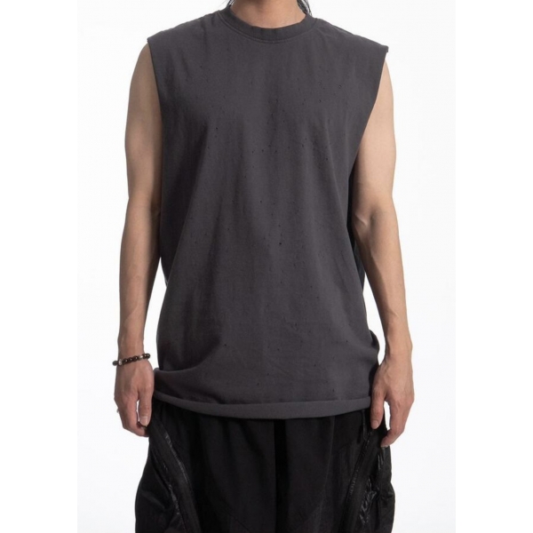 韓國 CLEAN FIT 針洞 小破壞 寬肩 無袖 背心 上衣 (2color)...