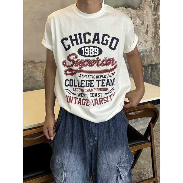 韓國 CHICAGO 芝加哥 1989 美式 LOGO 文字 短T 短袖 上衣 ...