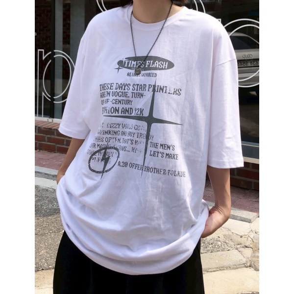 韓國 TIMES FLASH 十字星 銀河 閃電 文字 短T 短袖 上衣 (2c...