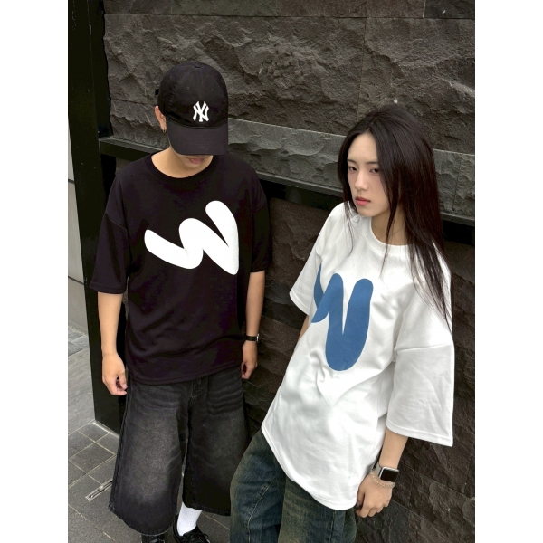 韓國 Q體 手繪 W發泡 LOGO 短T 短袖 上衣 (2color)