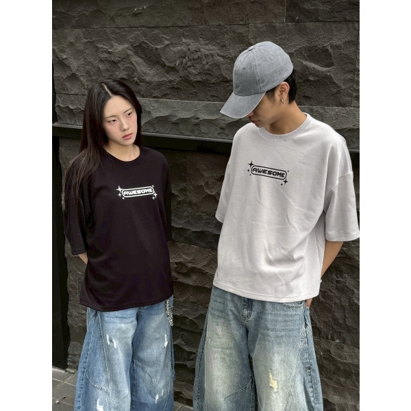 韓國 AWESOME 十字星 LOGO 星標 BOXY 寬短 短T 短袖 上衣 ...