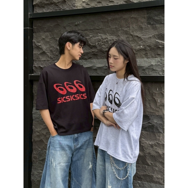 韓國 666 SICSICSICS 斑駁 立體 文字 BOXY 寬短 短T 短袖...