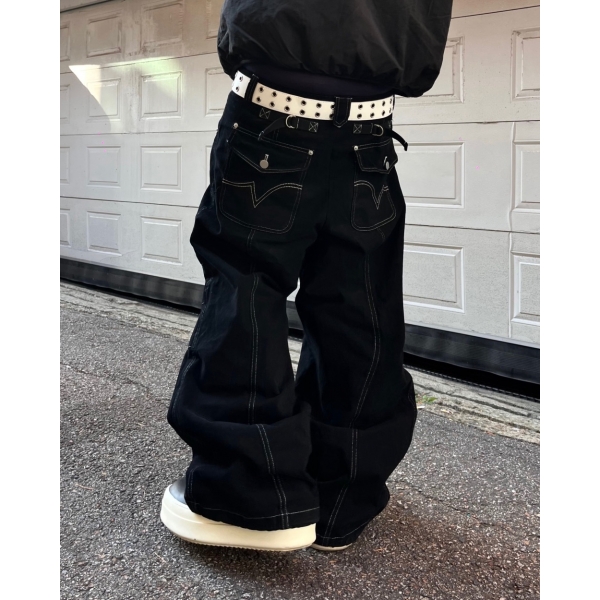 Cause closet 反縫線 設計感 波浪 口袋 丹寧 寬版 牛仔褲 (3c...