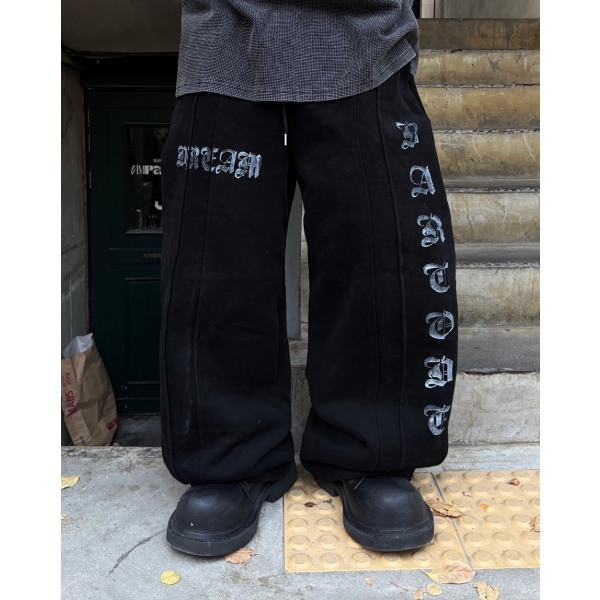 Cause closet 歌德 文字 LOGO 切線 重磅 抽繩 寬版 棉褲 (...