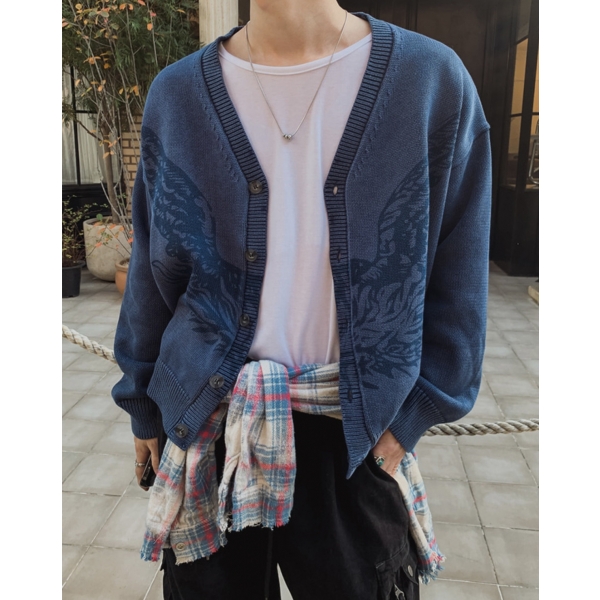 2PLAN 桀驁 老鷹 圖騰 V領 高級 針織 開襟外套 (2color)