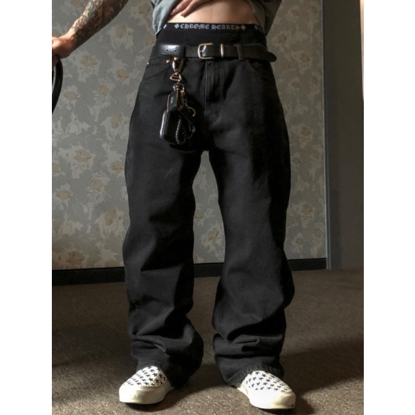 ESSU 完美版型 堆積感 街頭 水洗 寬版 黑牛仔褲