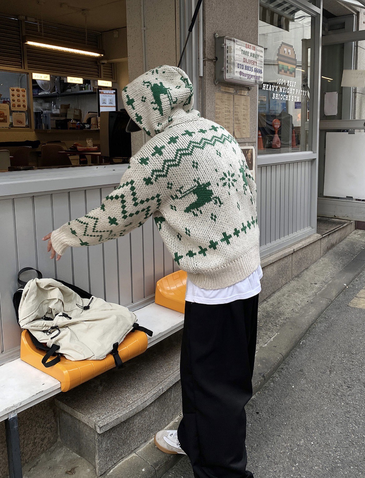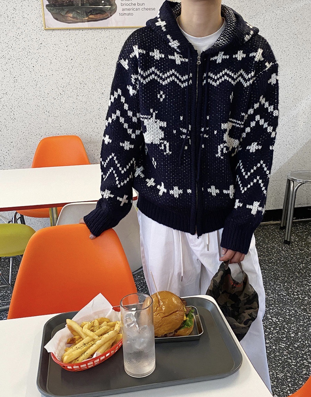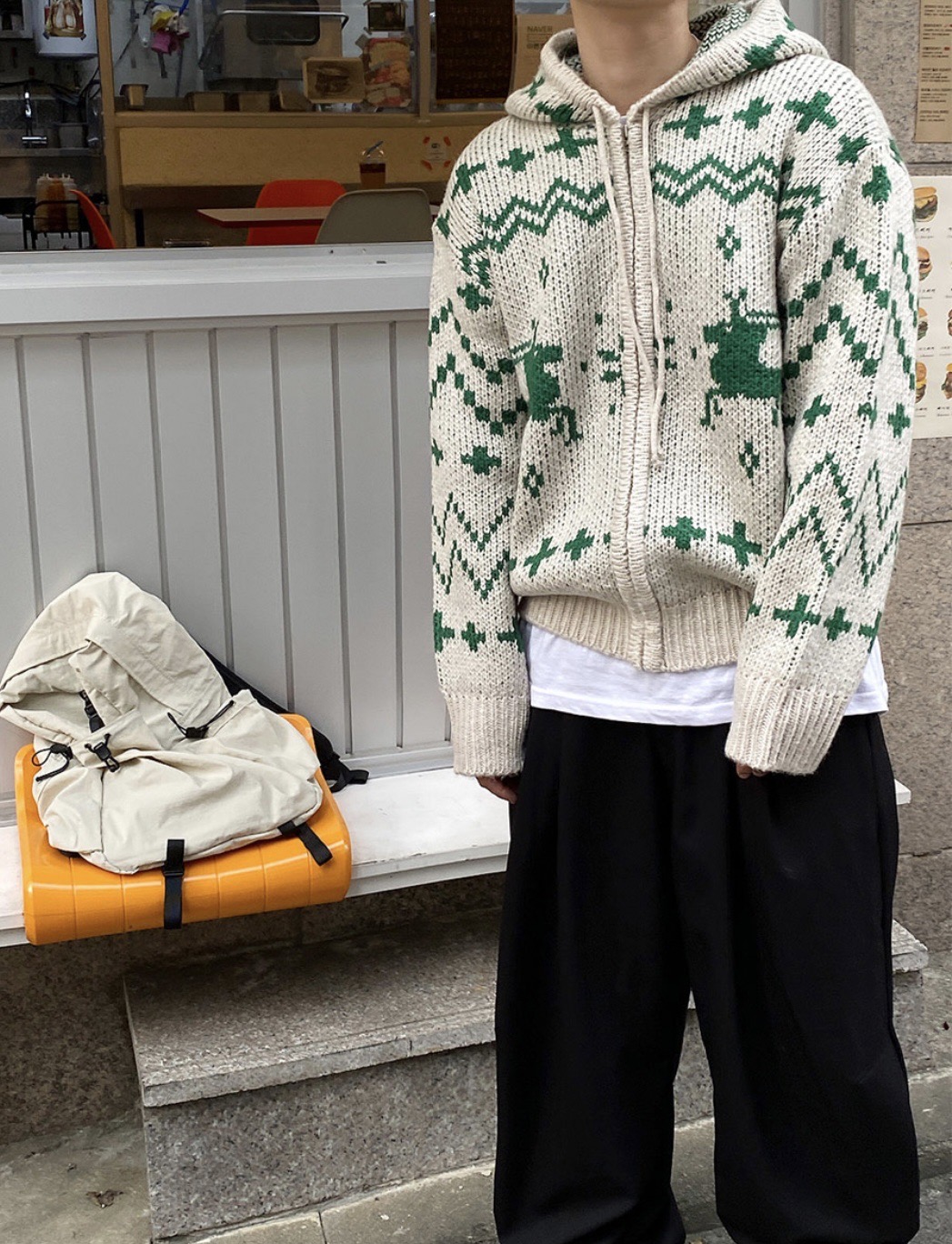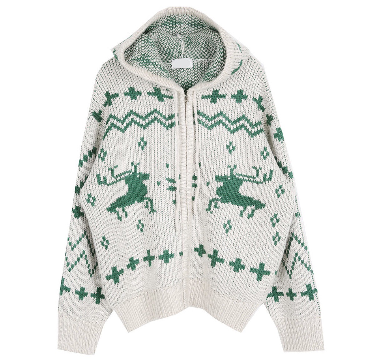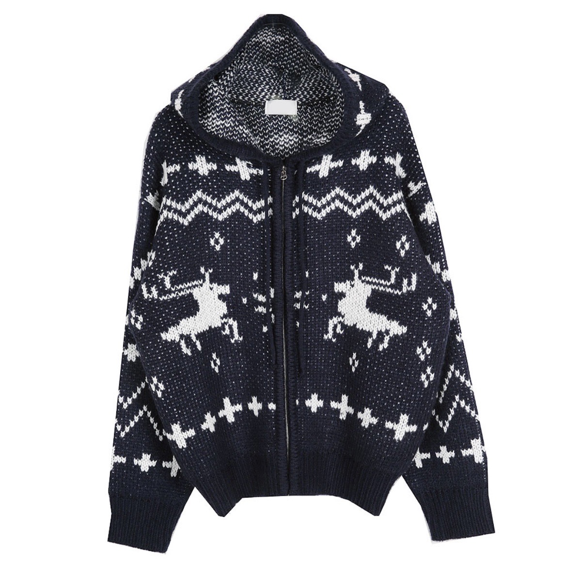 HOLY IN CODE 聖誕 麋鹿 厚針織 重磅 抽繩 連帽外套 (2color)