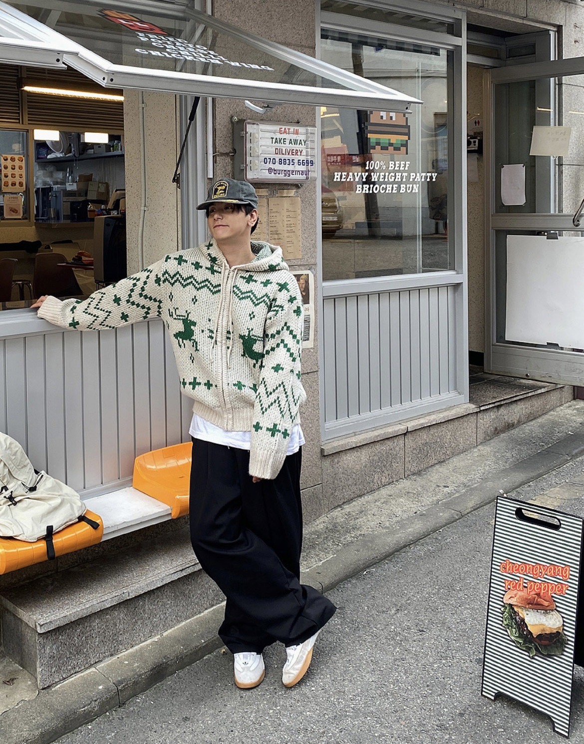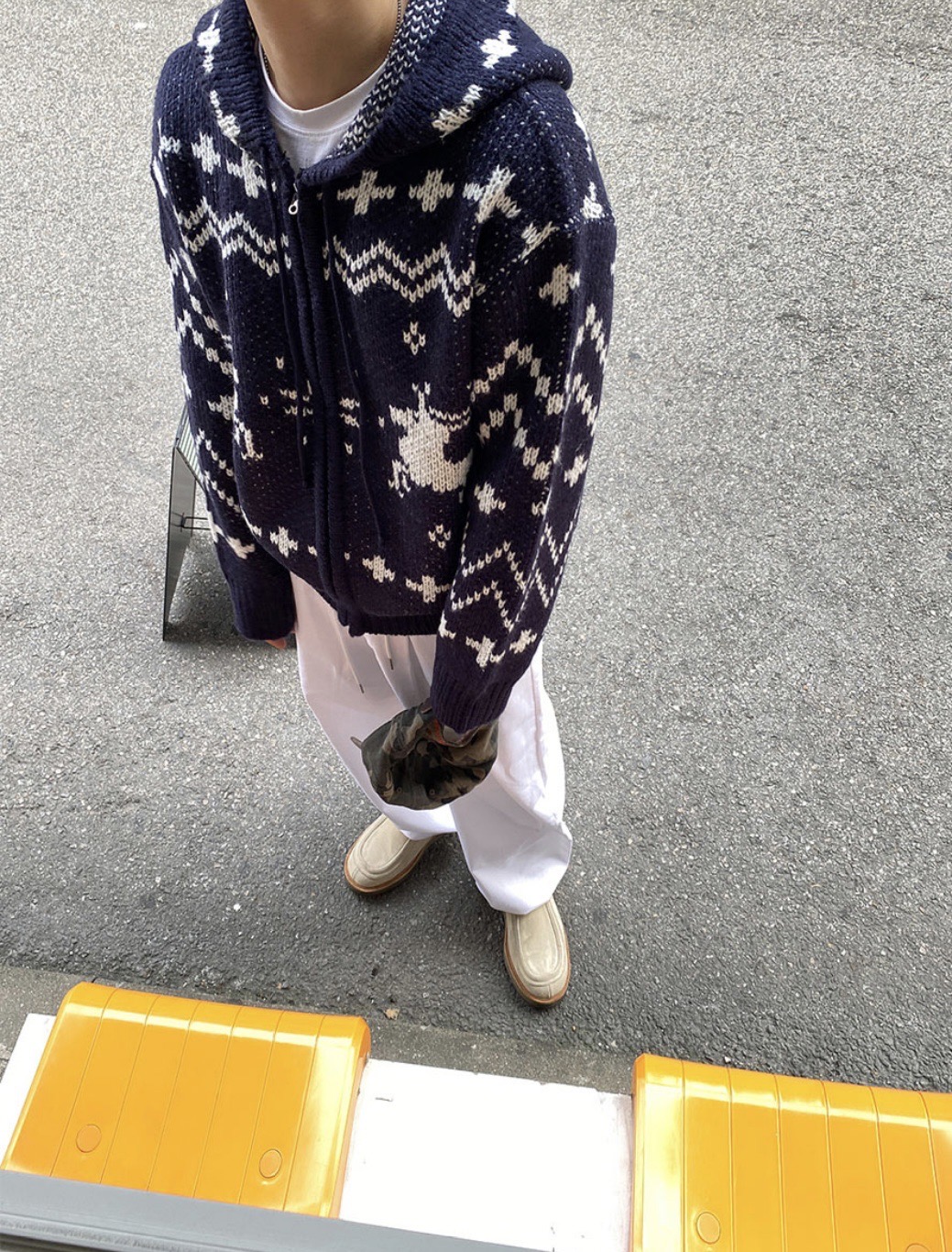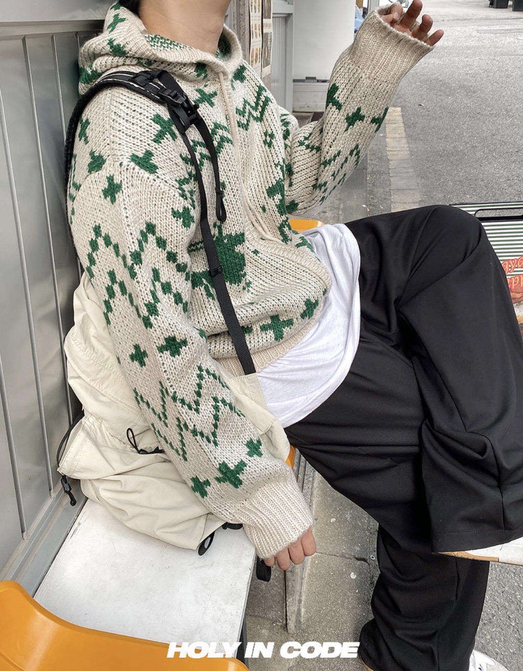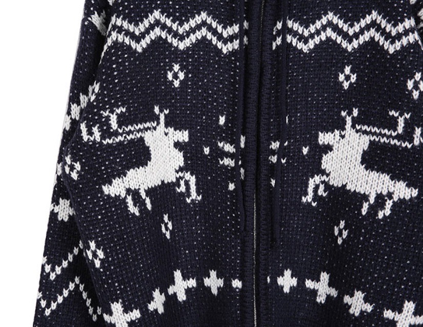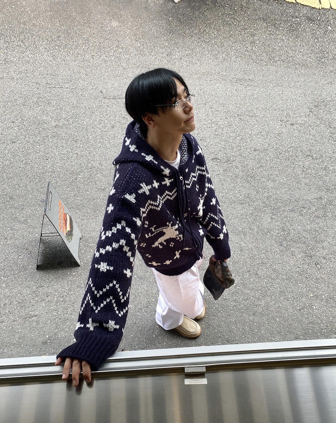 HOLY IN CODE 聖誕 麋鹿 厚針織 重磅 抽繩 連帽外套 (2color)