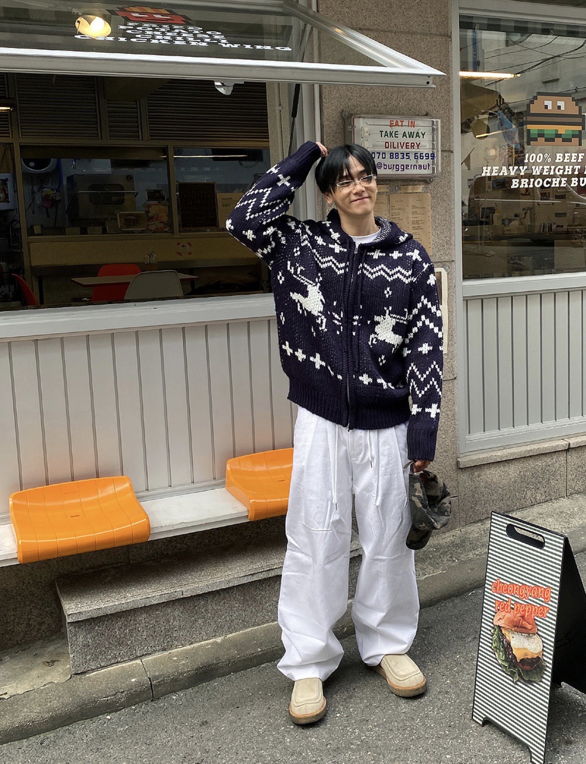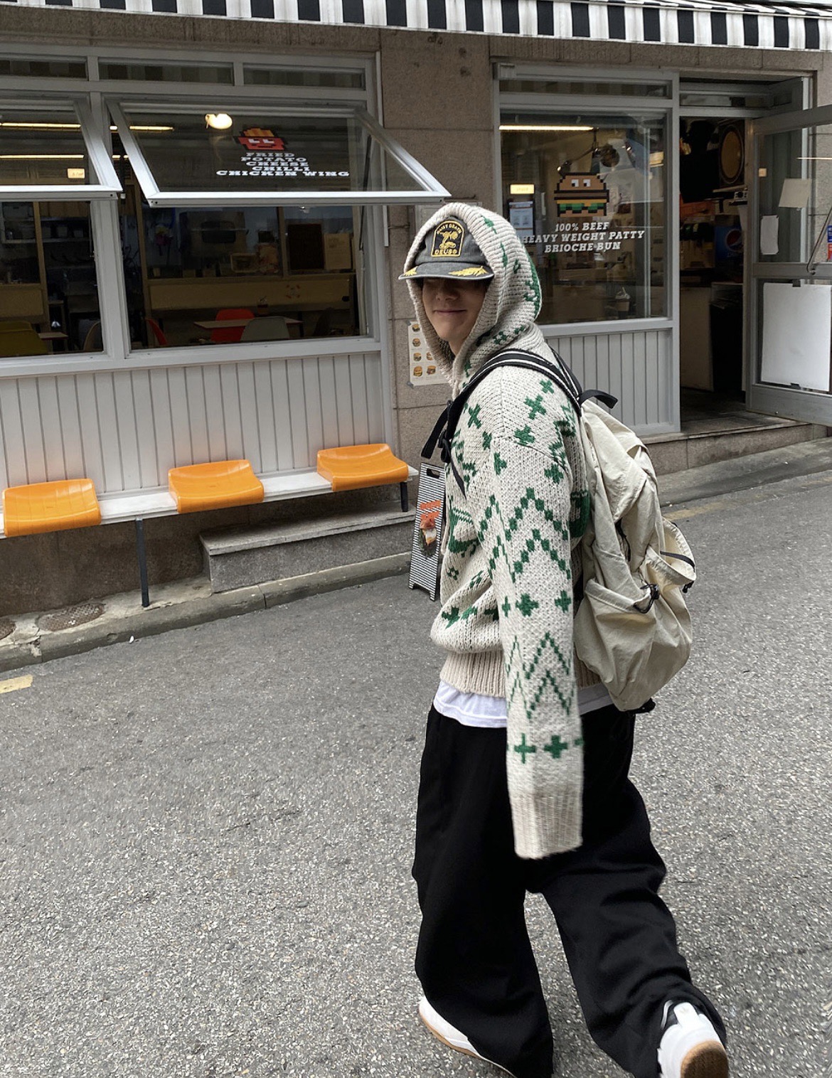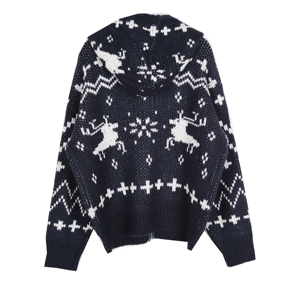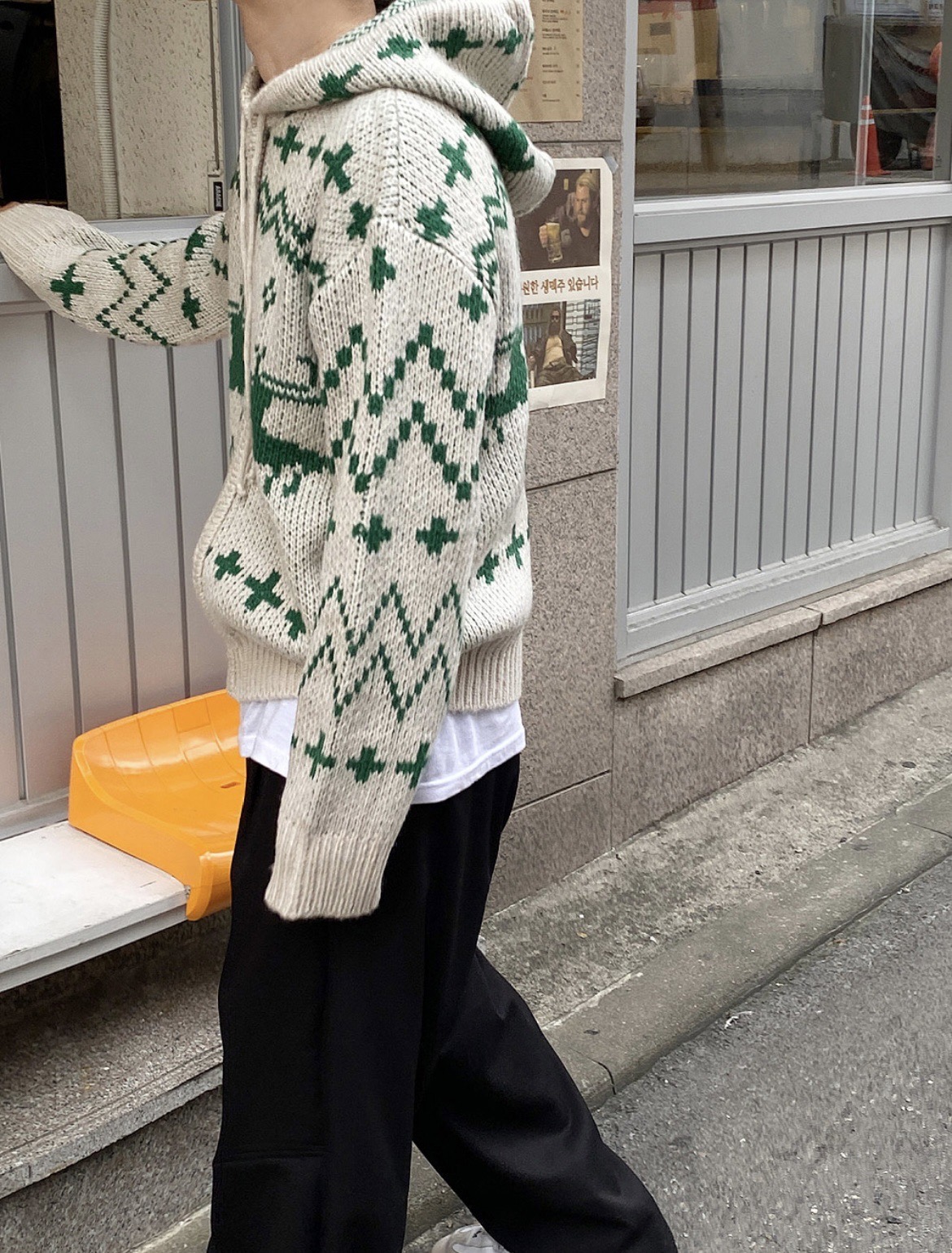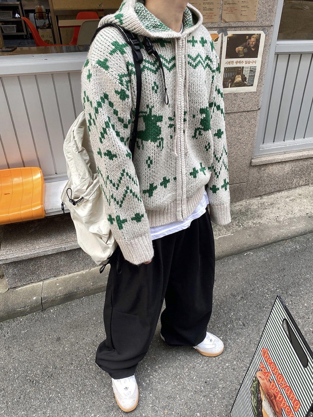 HOLY IN CODE 聖誕 麋鹿 厚針織 重磅 抽繩 連帽外套 (2color)