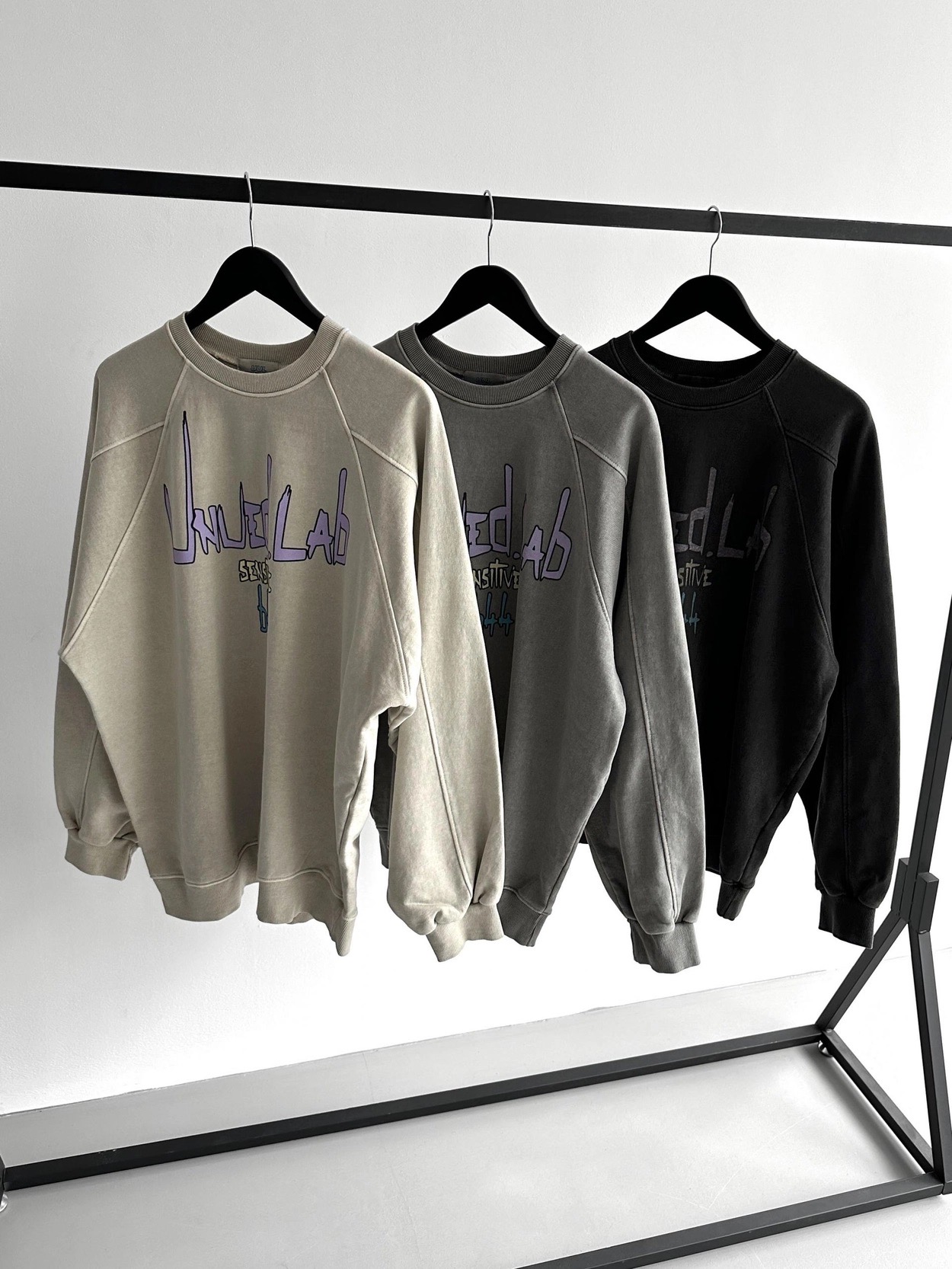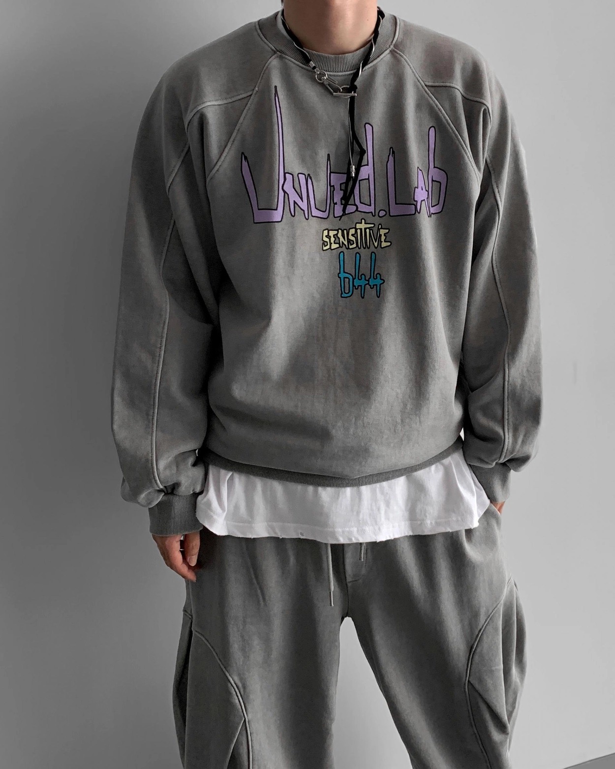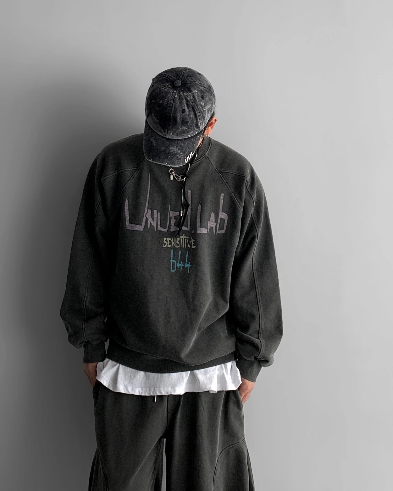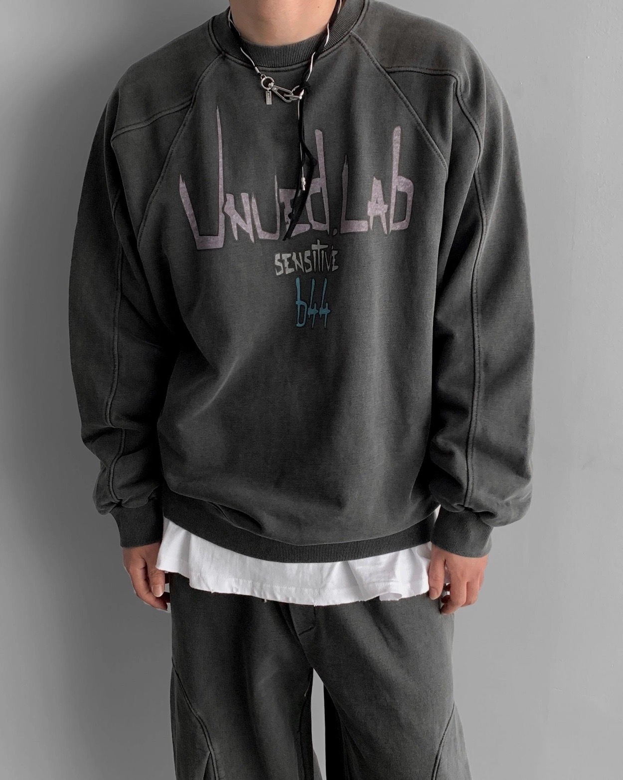 韓國 UNUSED LAB Q版 字體 洗舊感 長袖 衛衣 (3color)