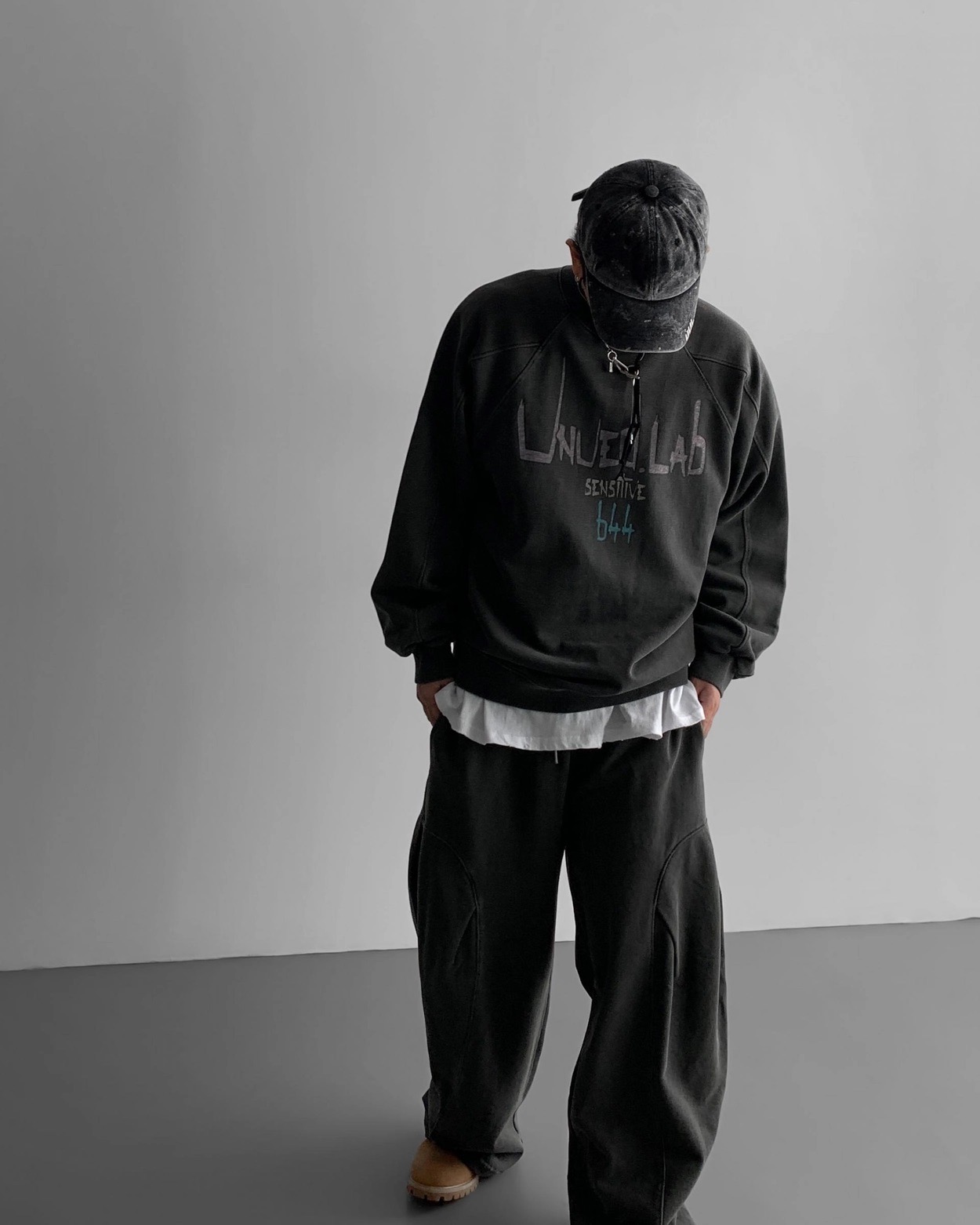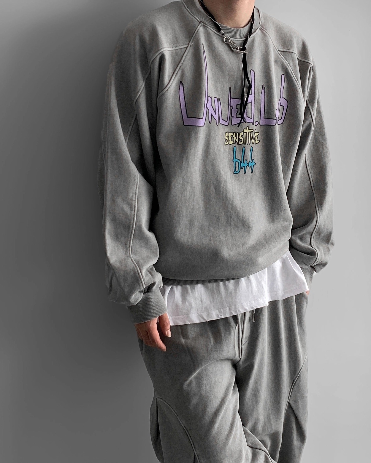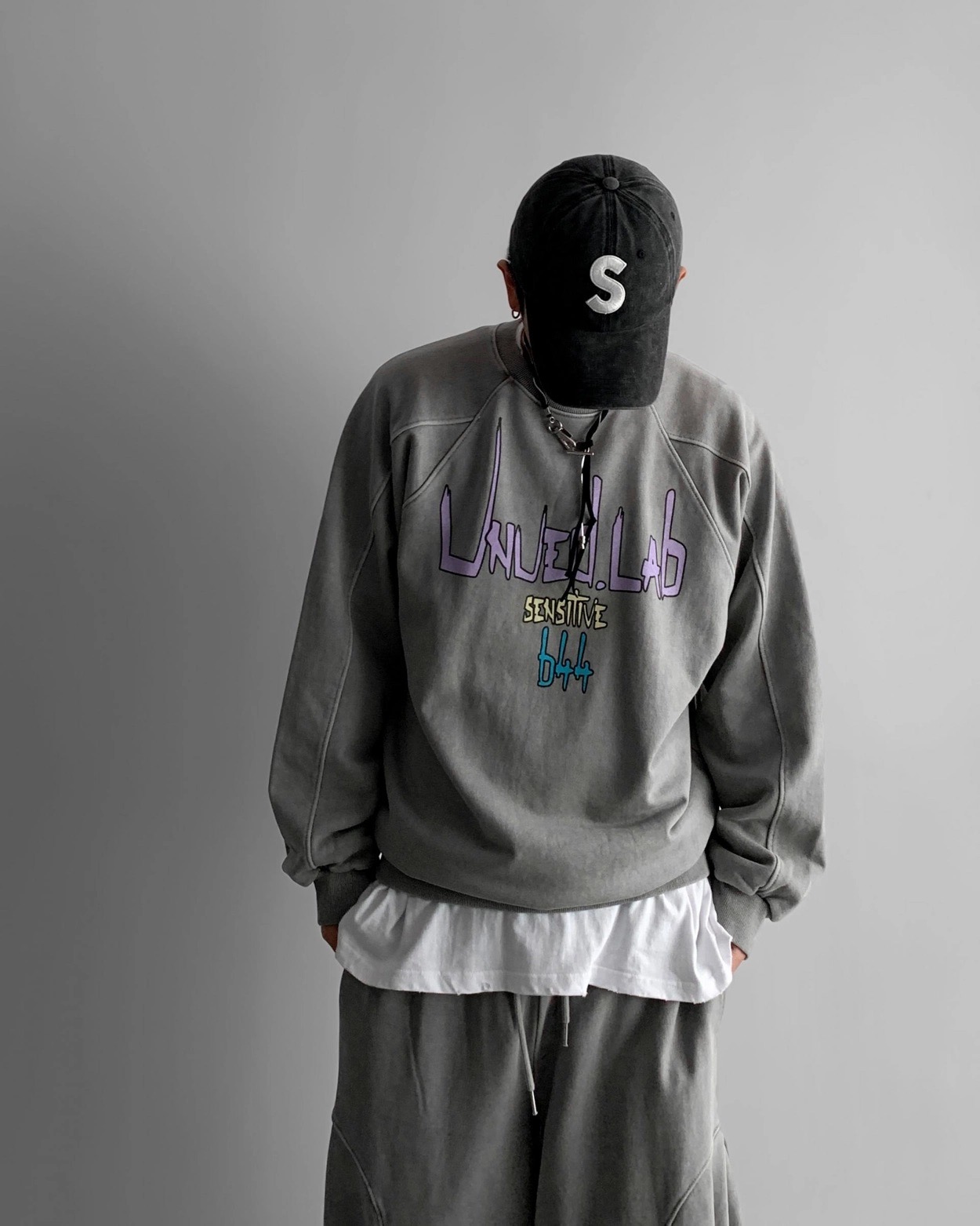 韓國 UNUSED LAB Q版 字體 洗舊感 長袖 衛衣 (3color)
