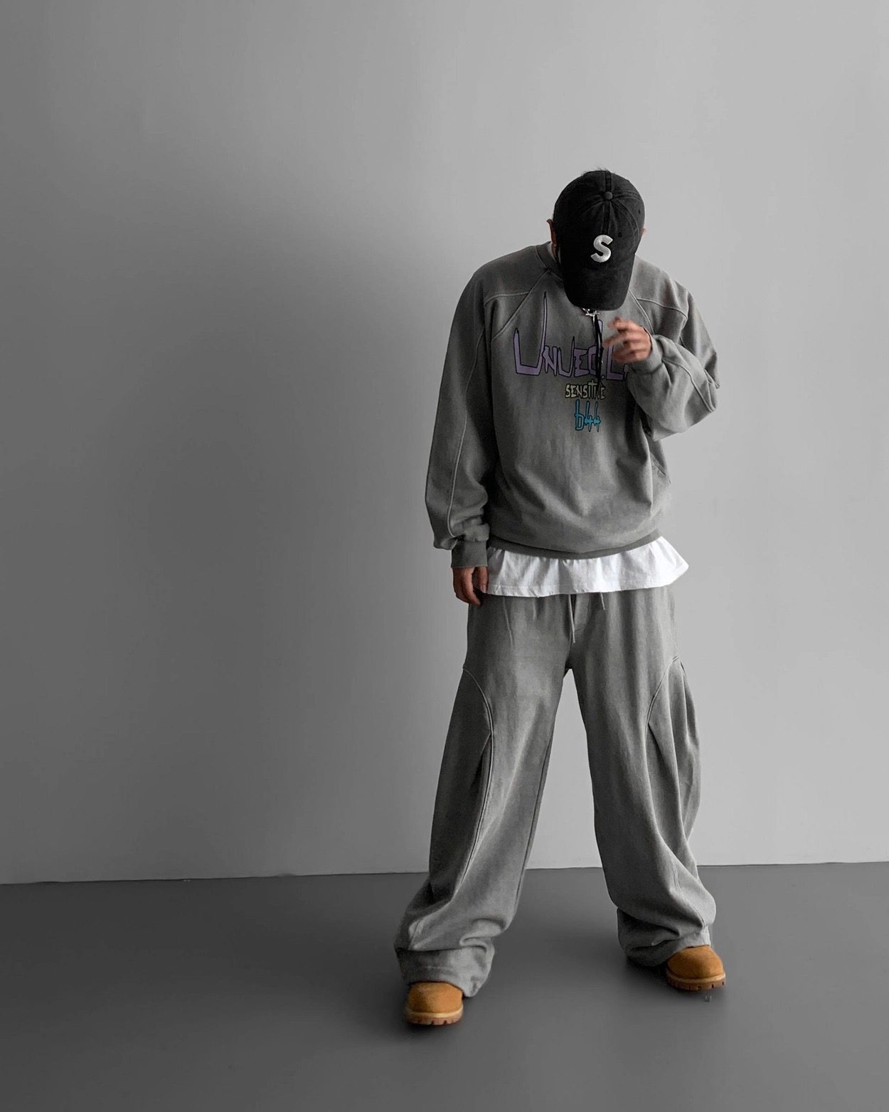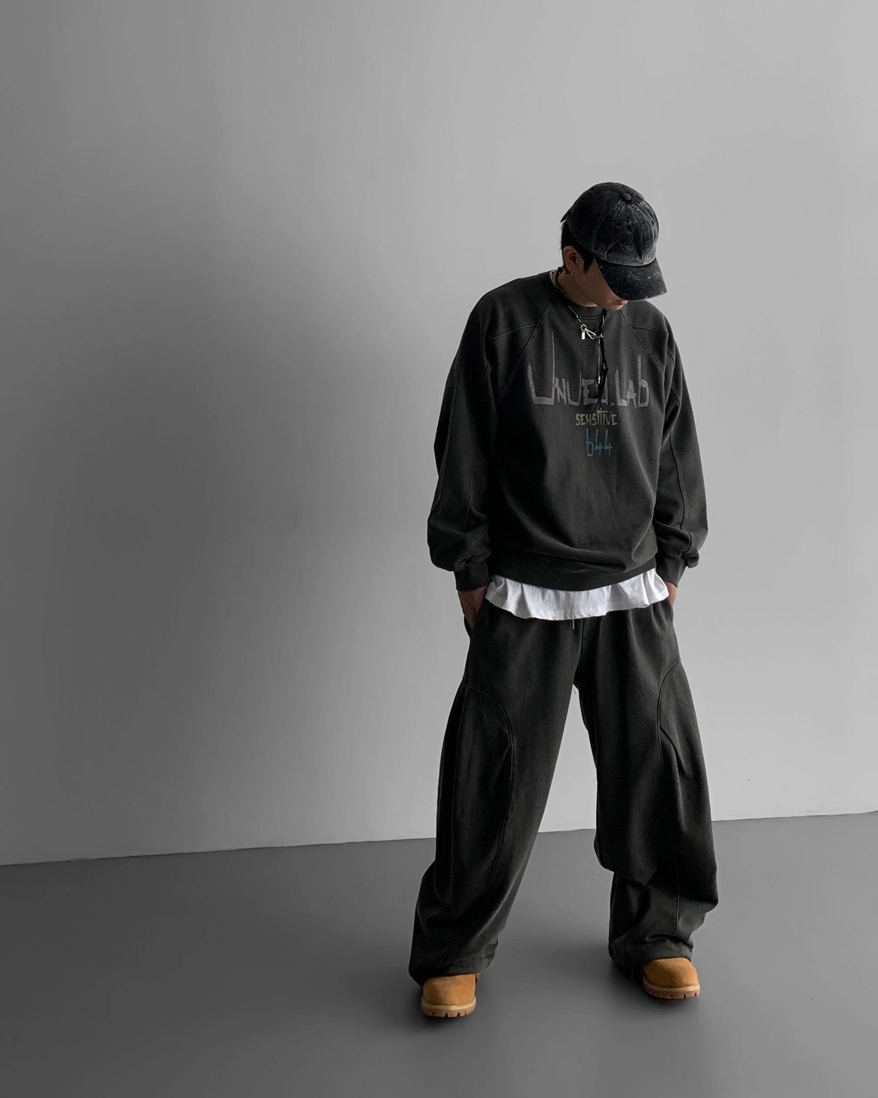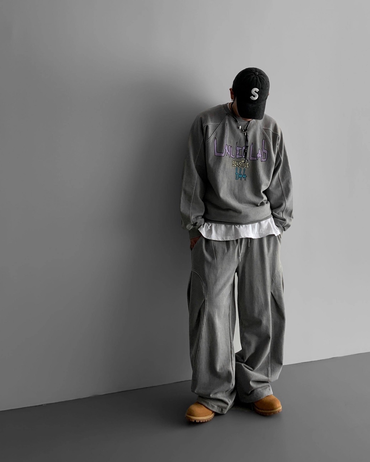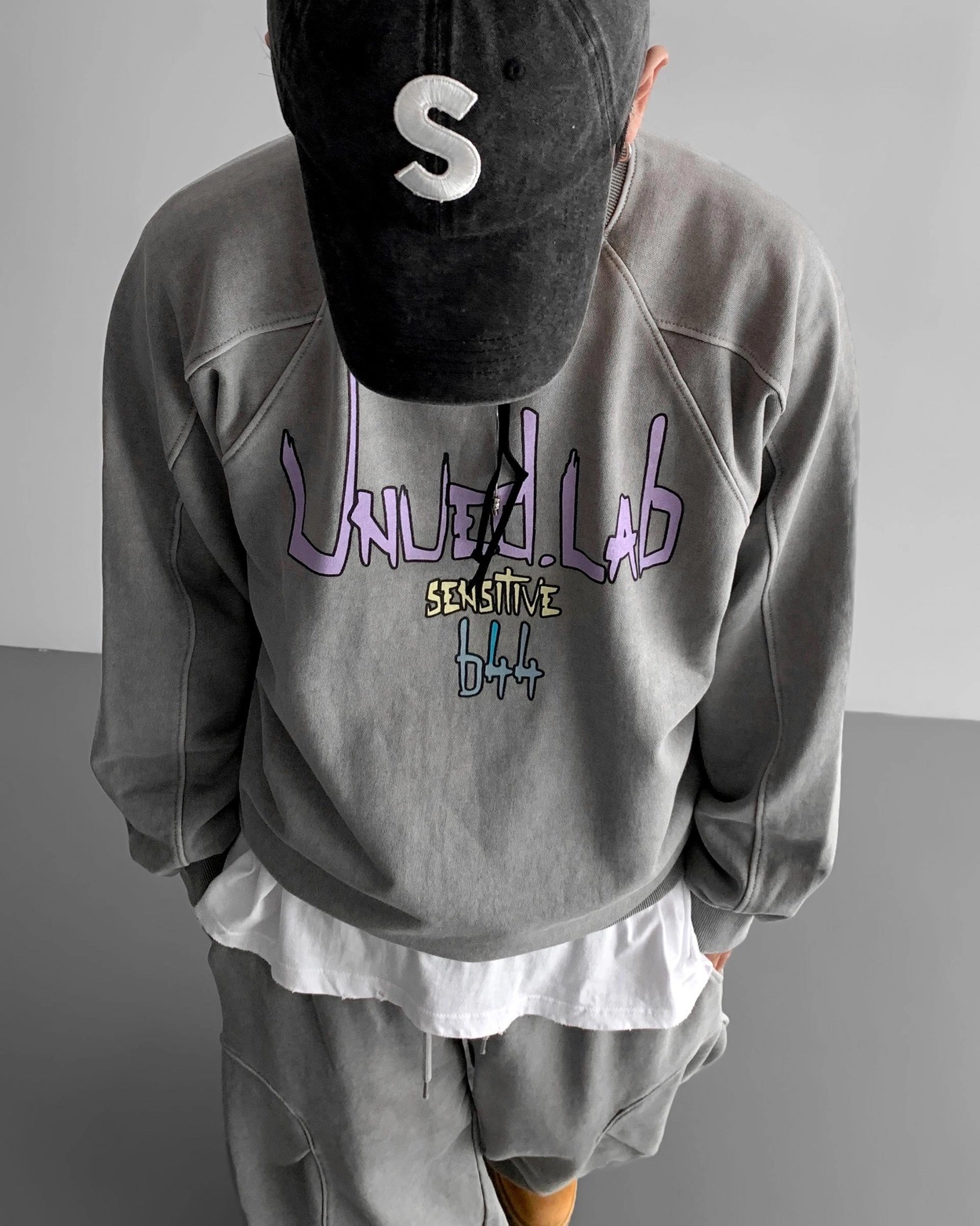 韓國 UNUSED LAB Q版 字體 洗舊感 長袖 衛衣 (3color)