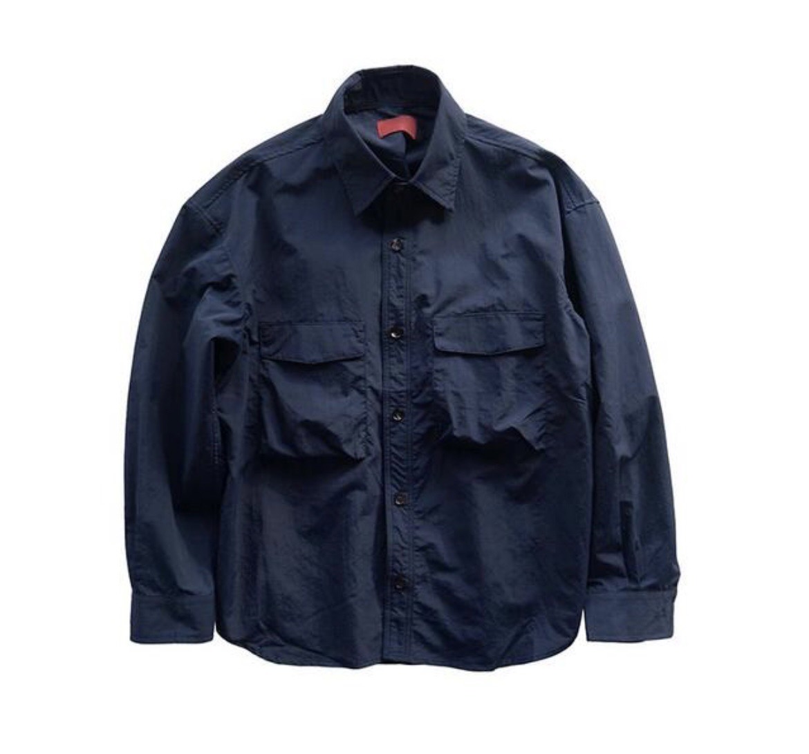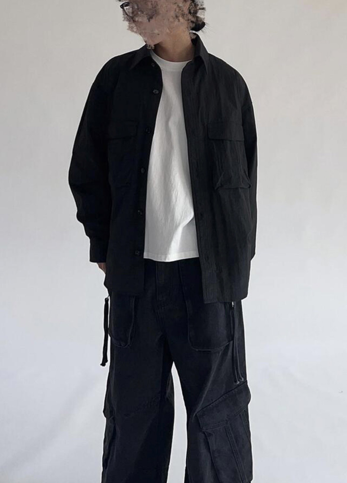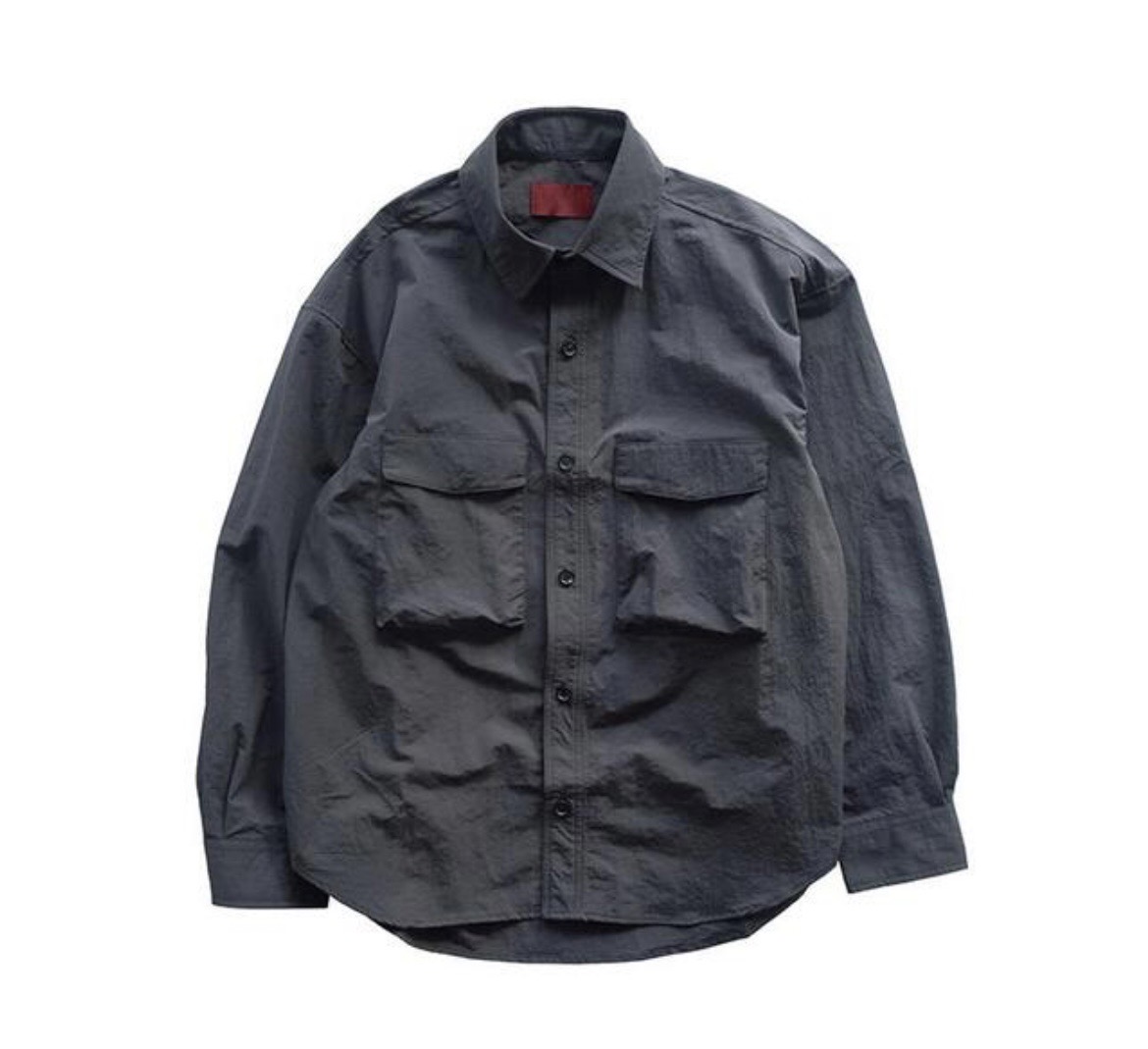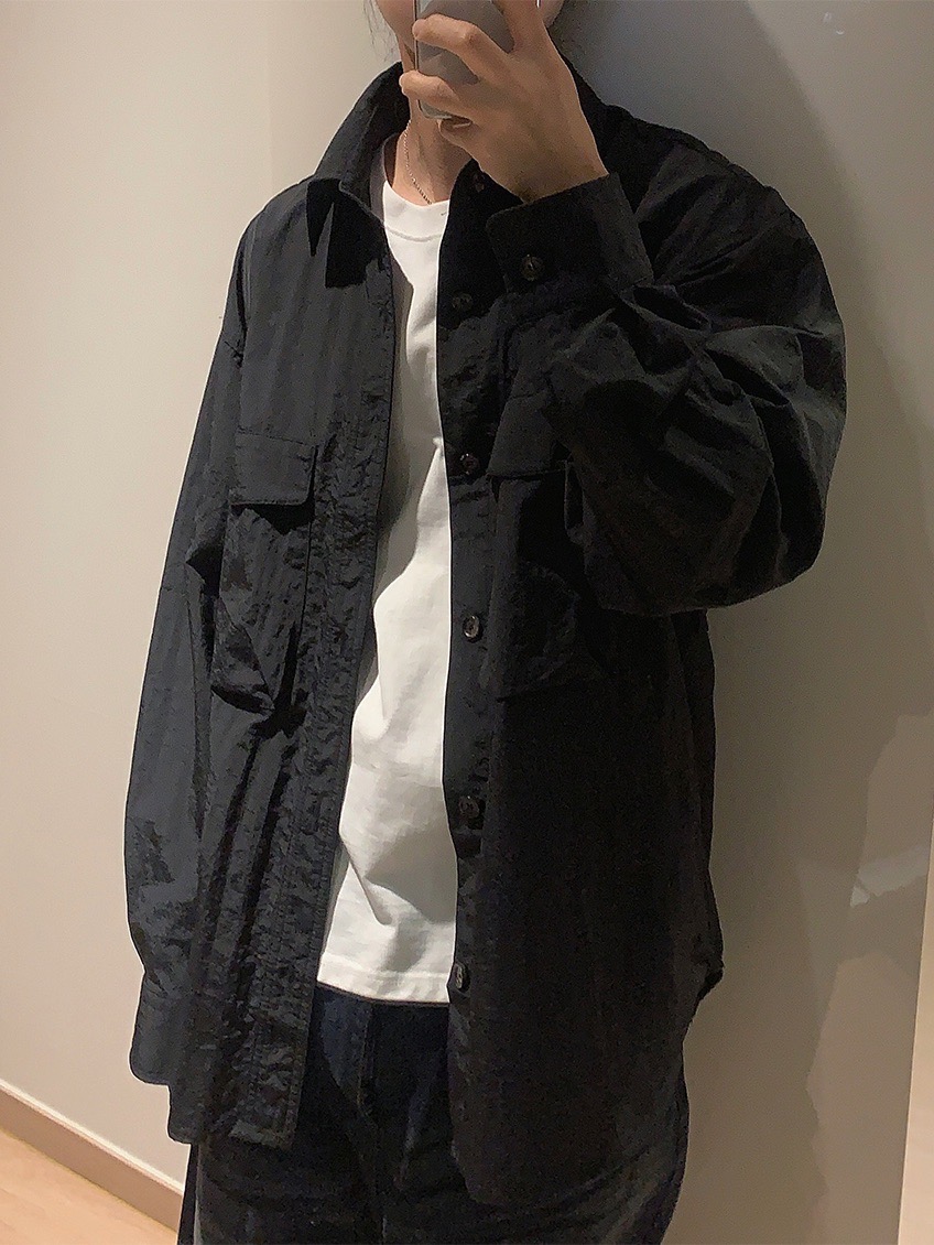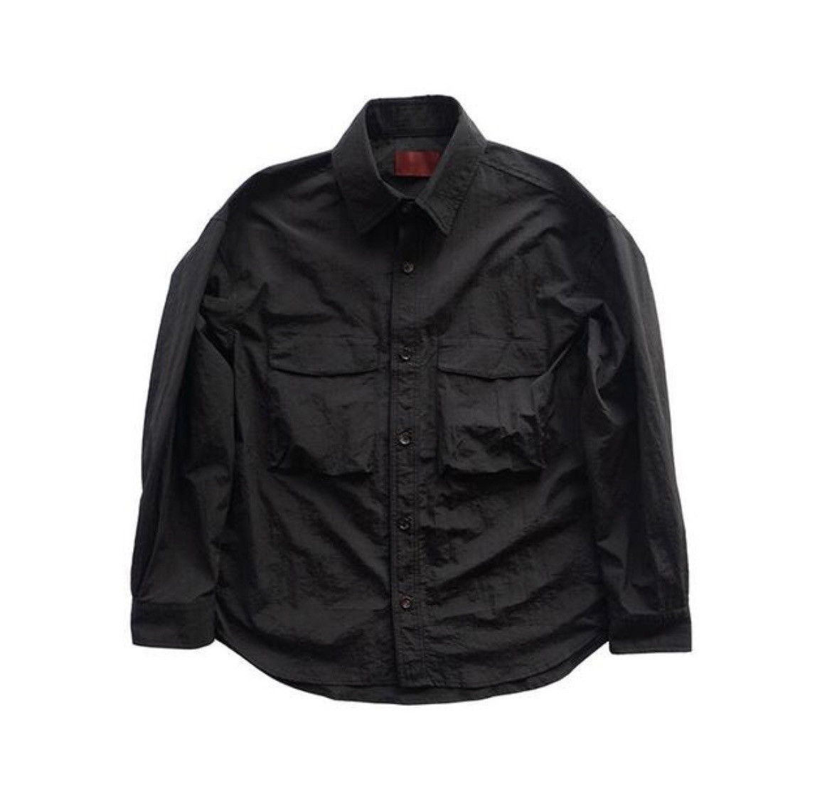 韓國 立體口袋 機能感 尼龍 素色 長袖襯衫 (3color)