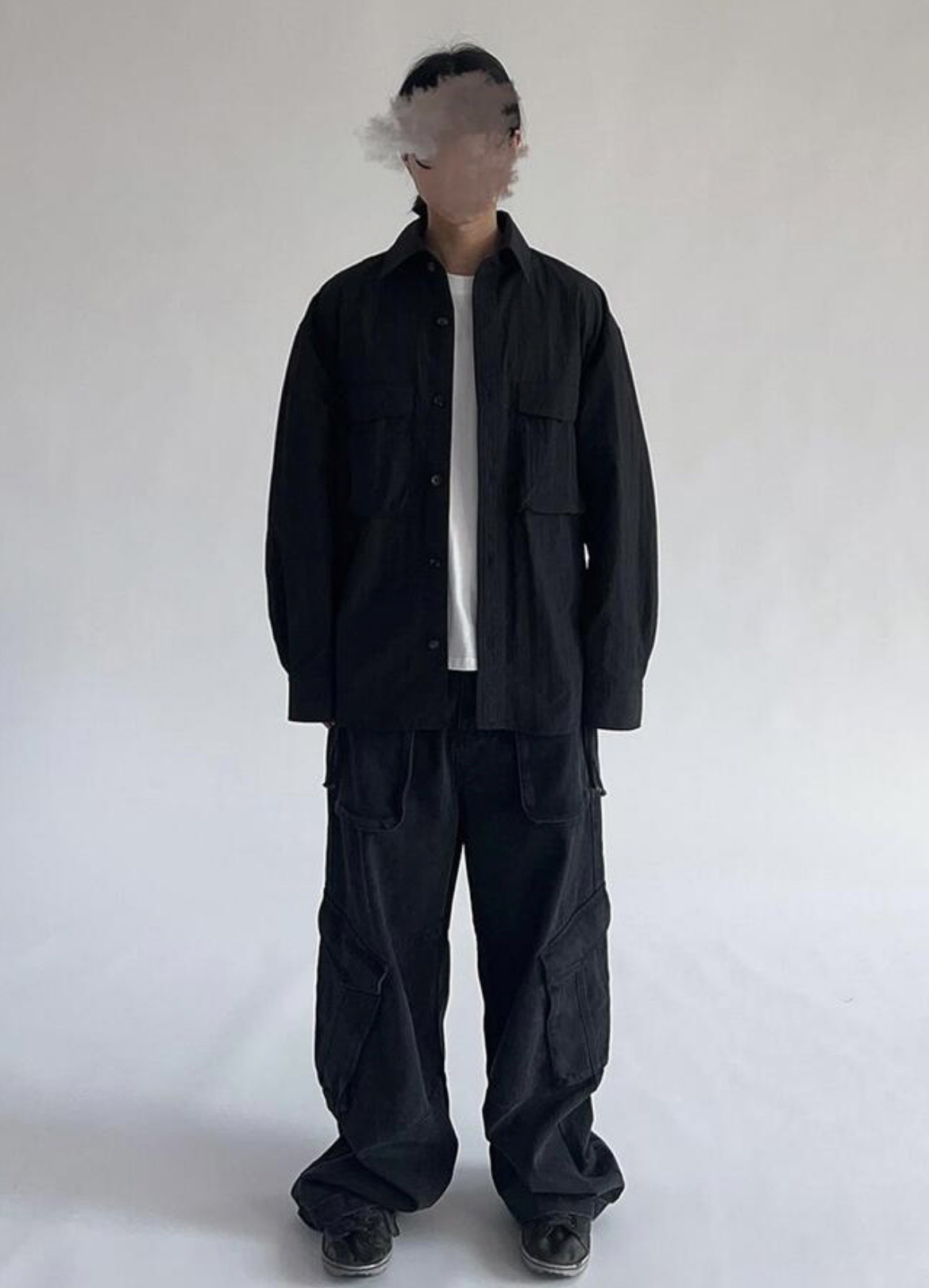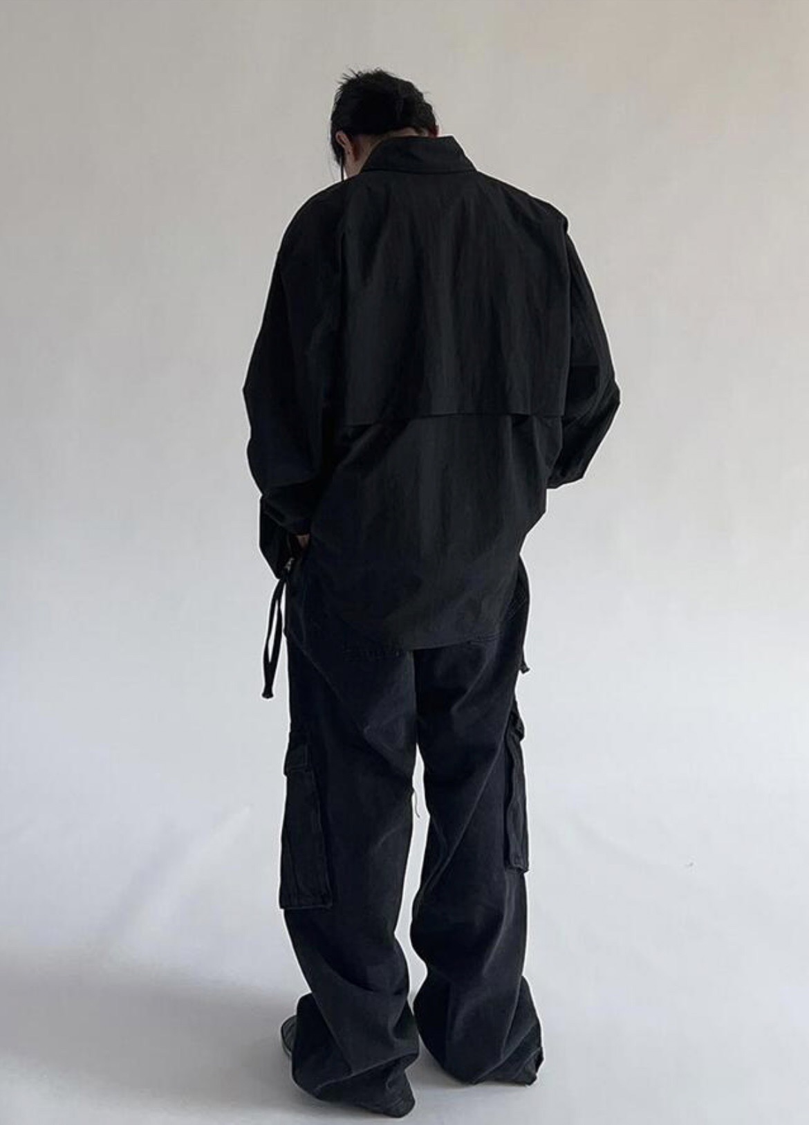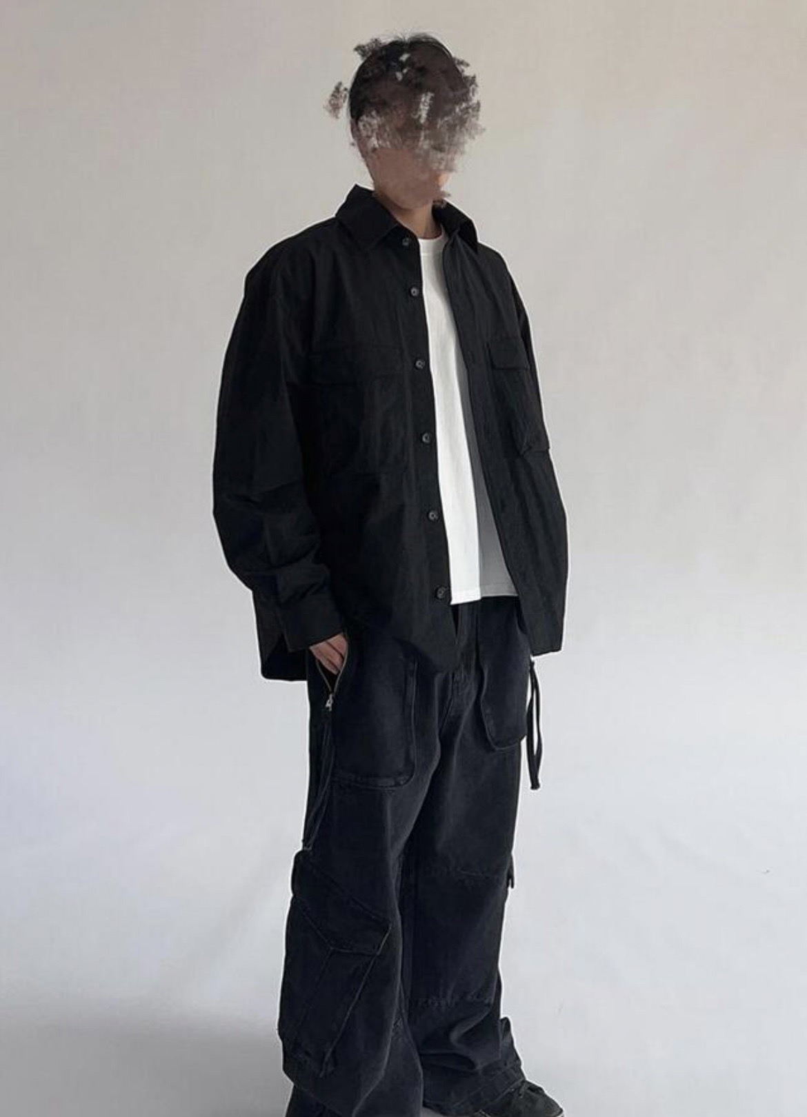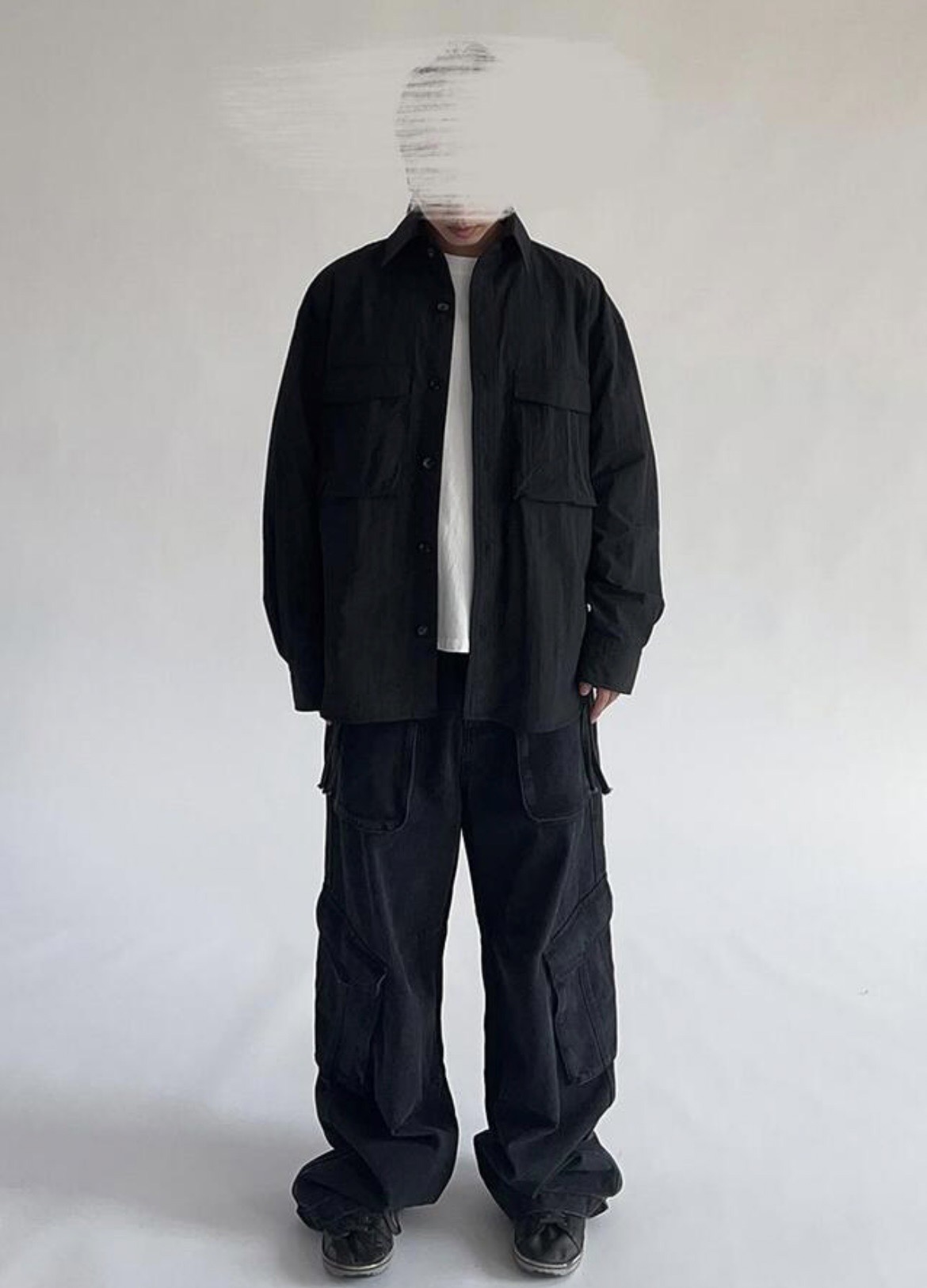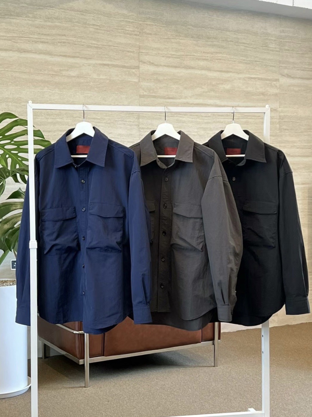 韓國 立體口袋 機能感 尼龍 素色 長袖襯衫 (3color)