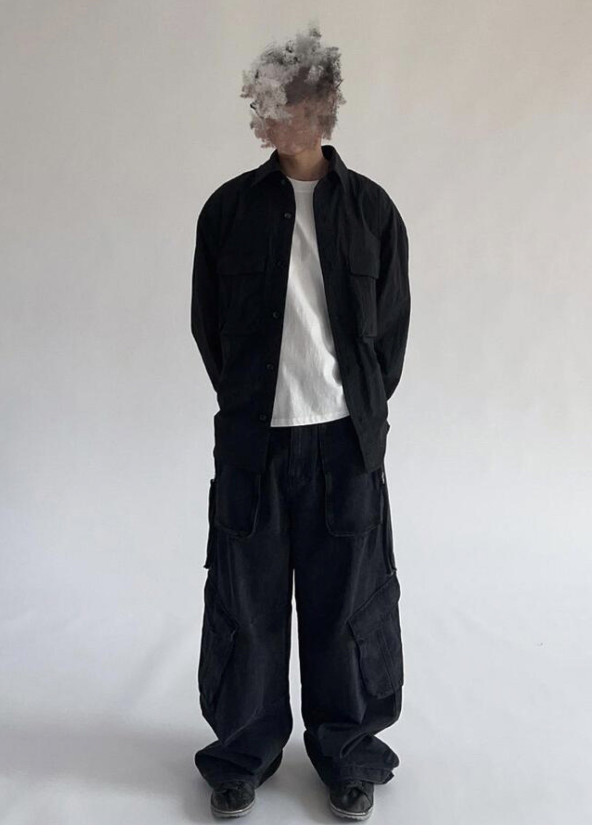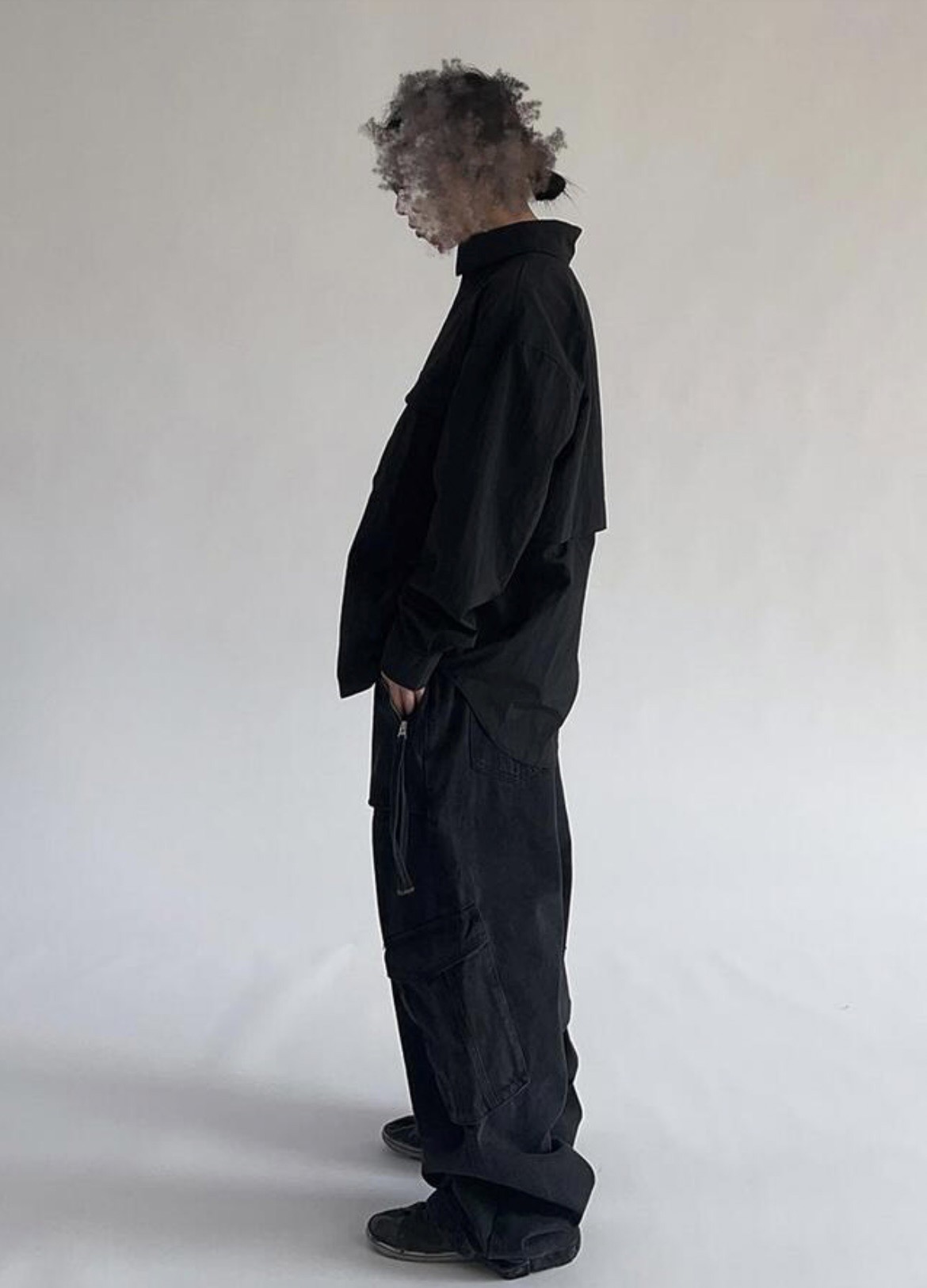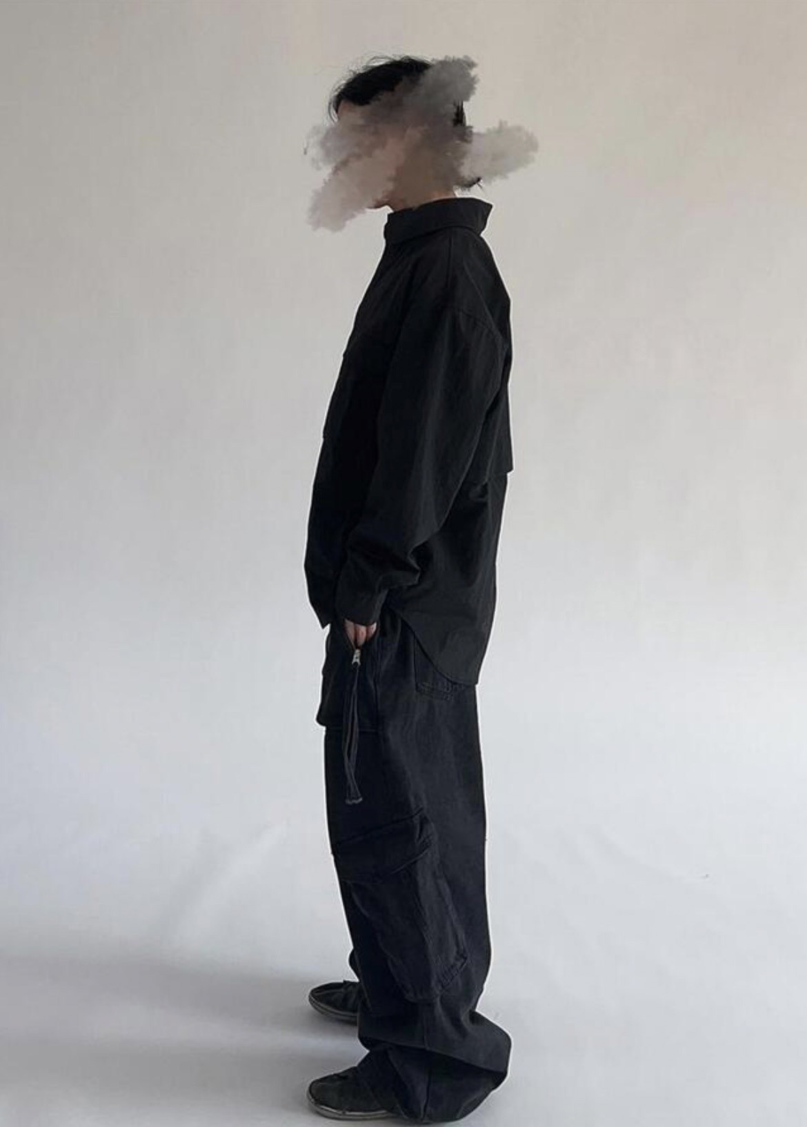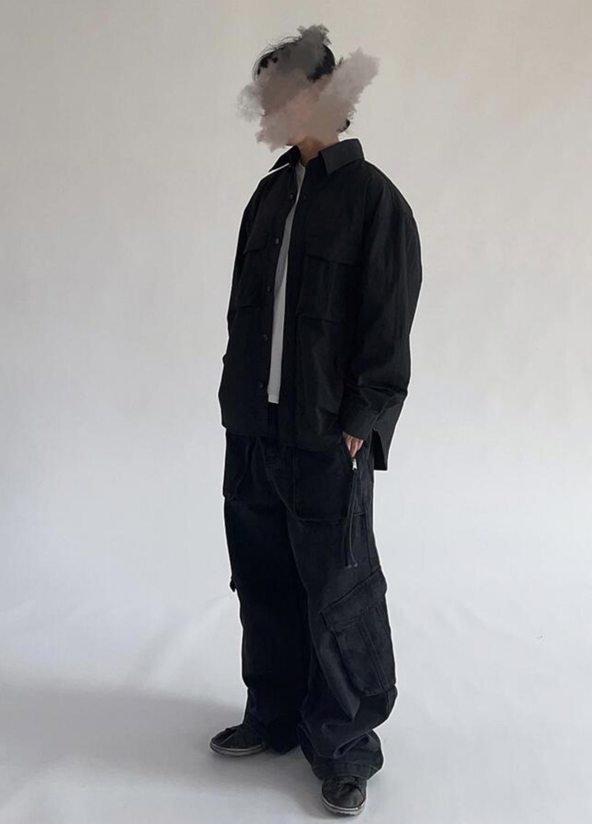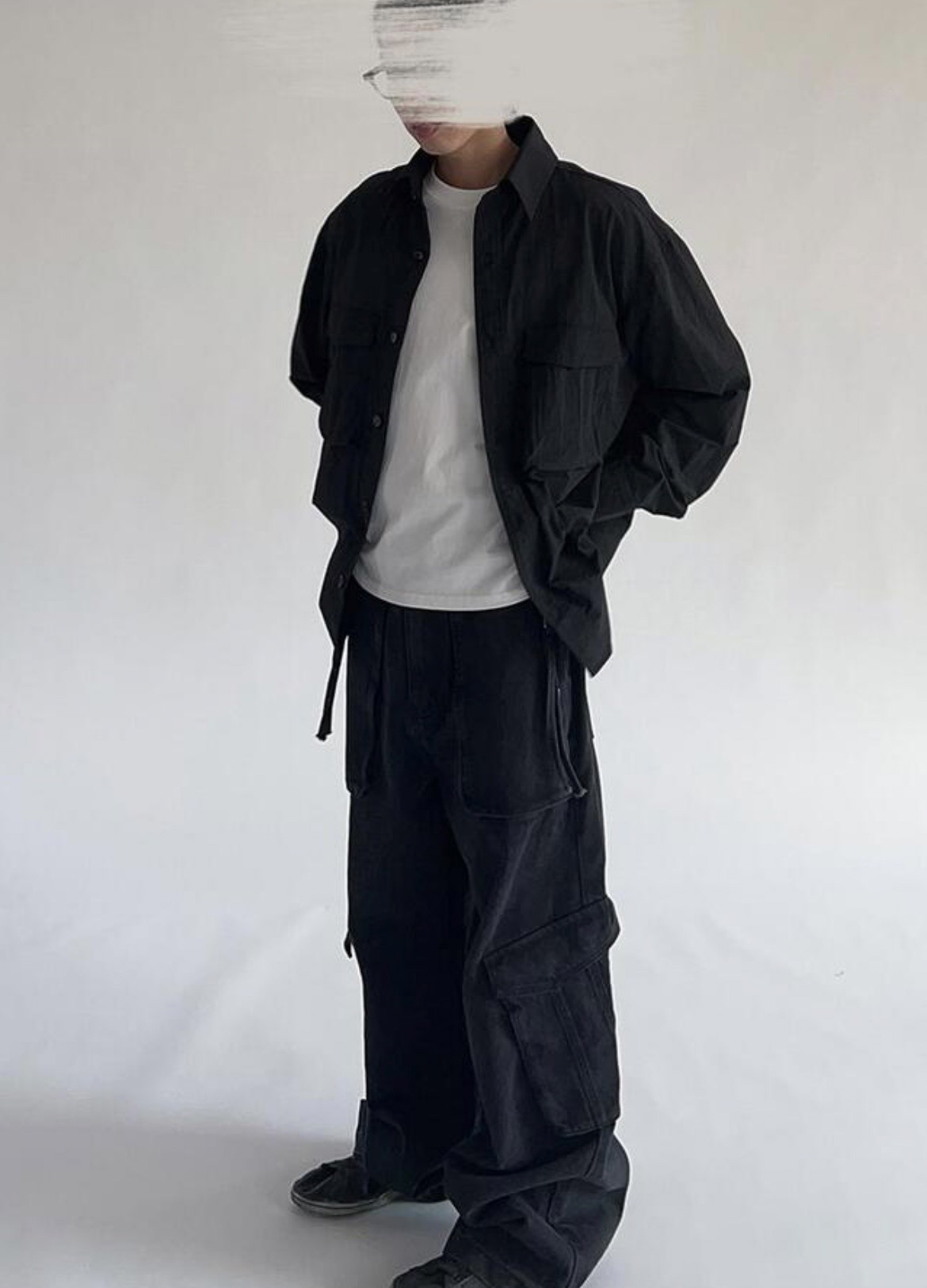 韓國 立體口袋 機能感 尼龍 素色 長袖襯衫 (3color)