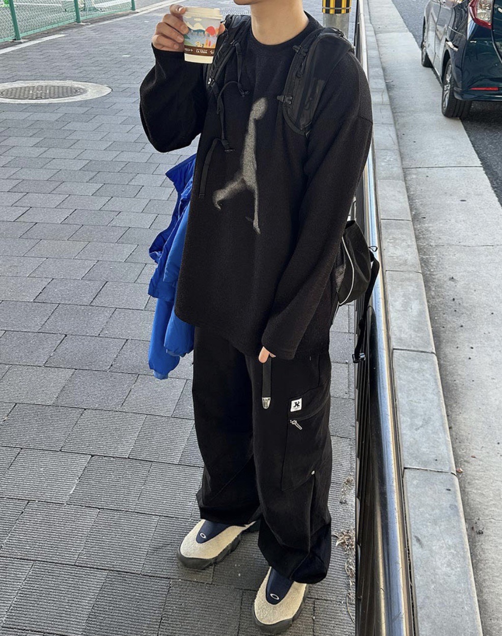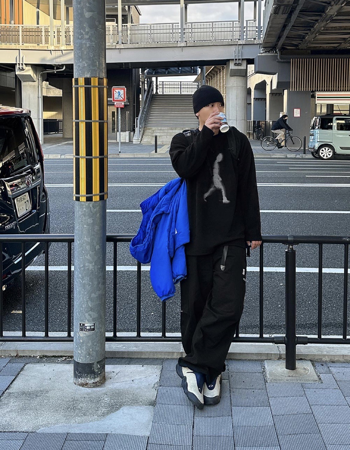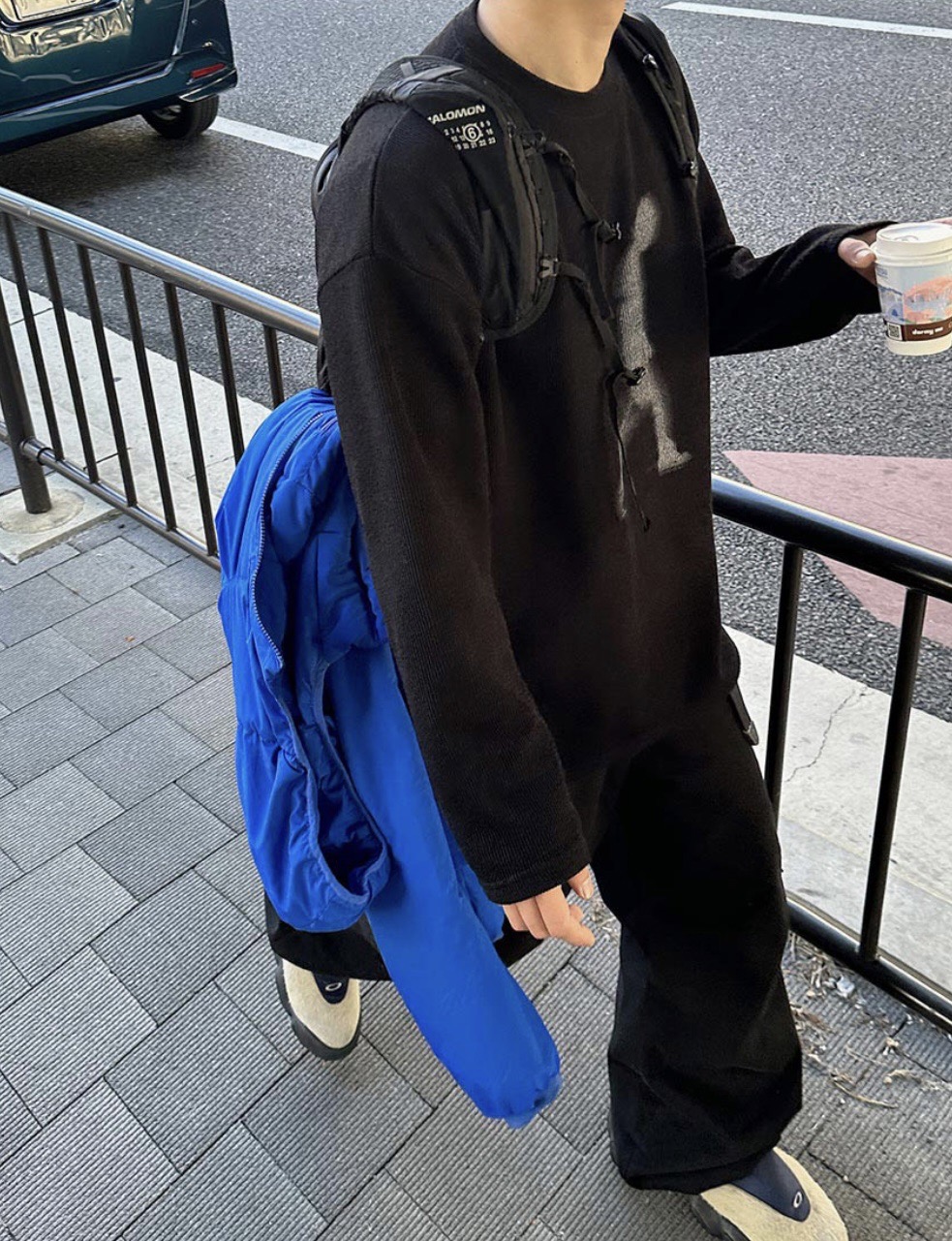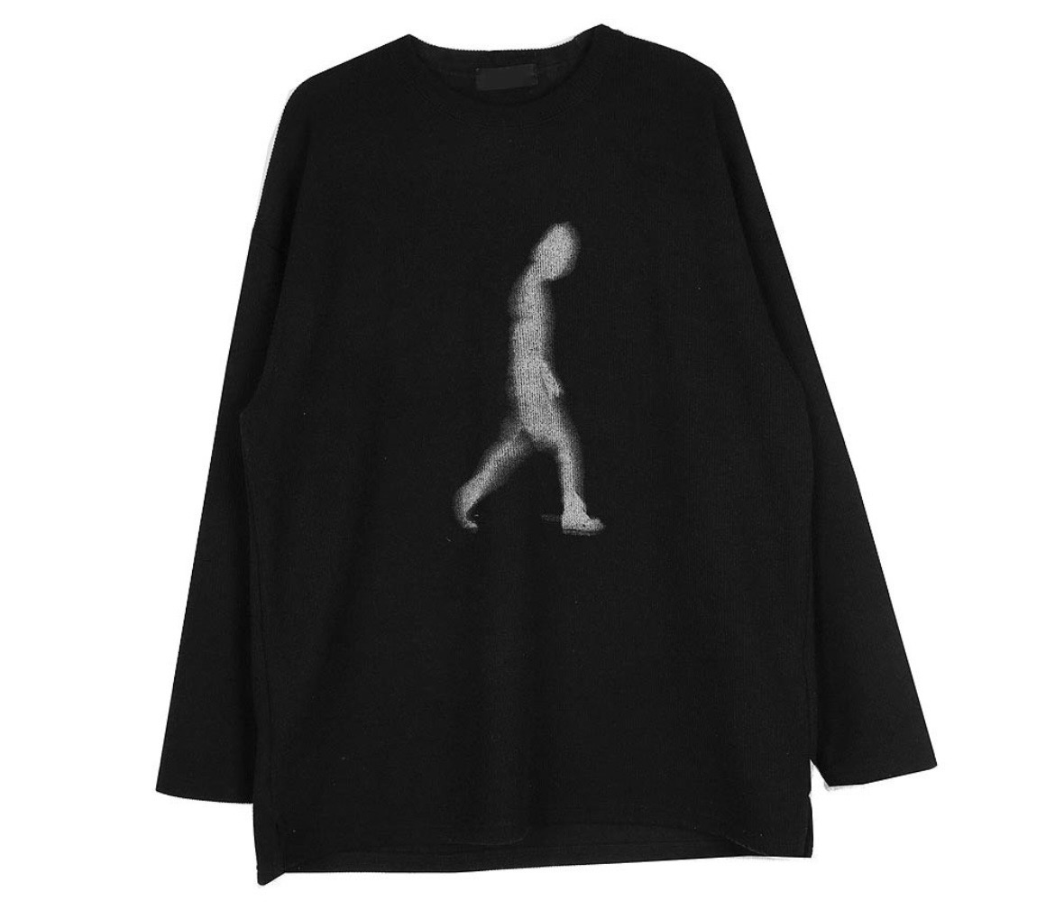 HOLY IN CODE 詭異 行人 圖案 針織 薄長袖 長T (2color)