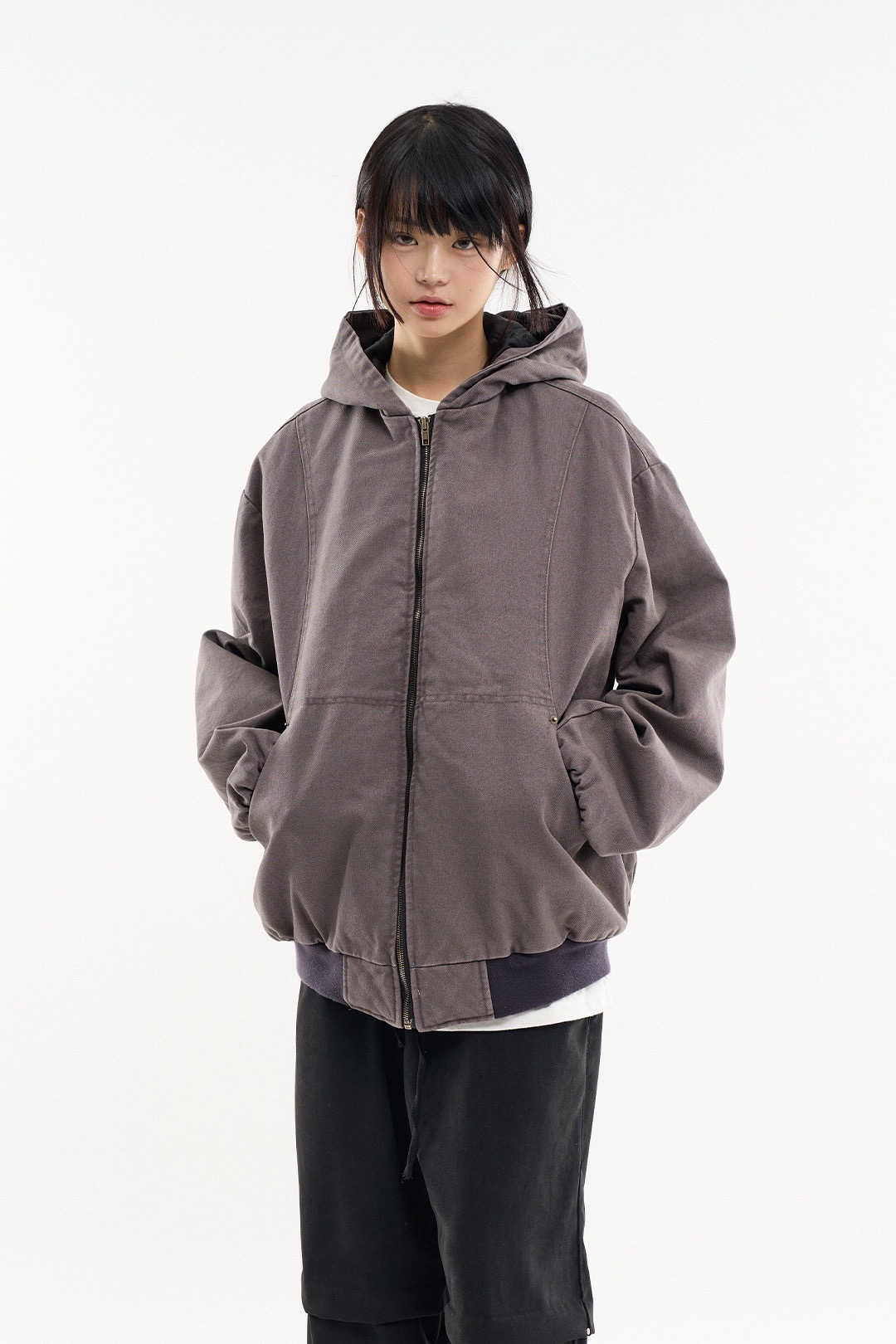 Rauco house 美式 做舊感 重磅 鋪棉 連帽外套 (2color)