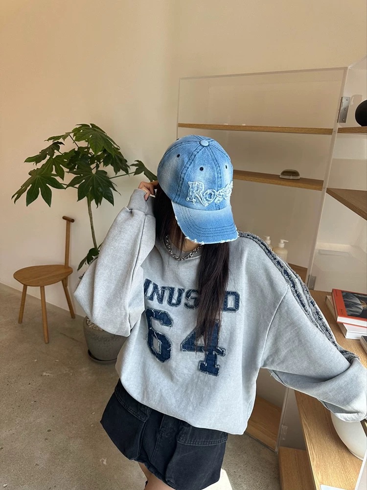 Rauco house UNUSED 64 破壞 牛仔布貼 做舊感 水洗 衛衣 (3color)