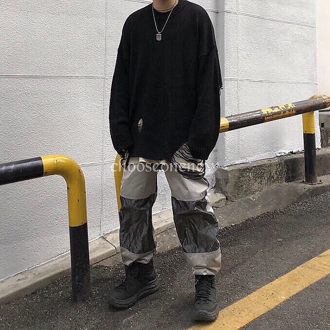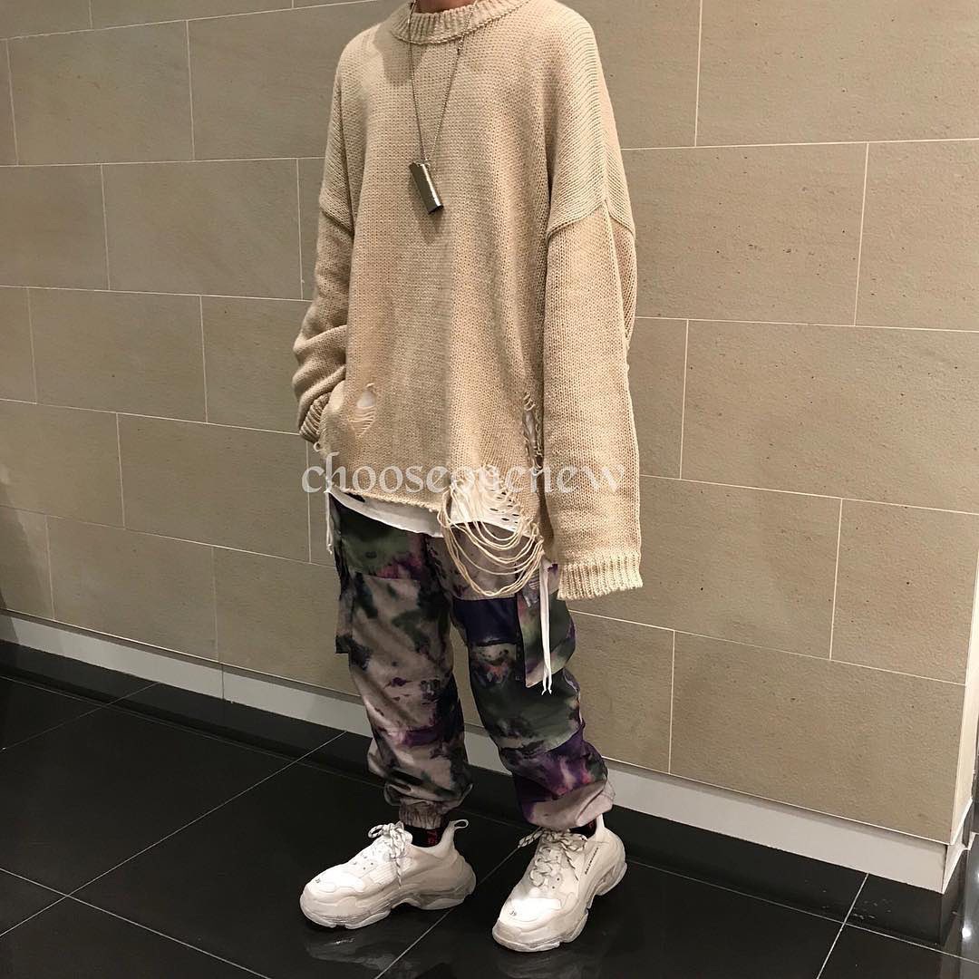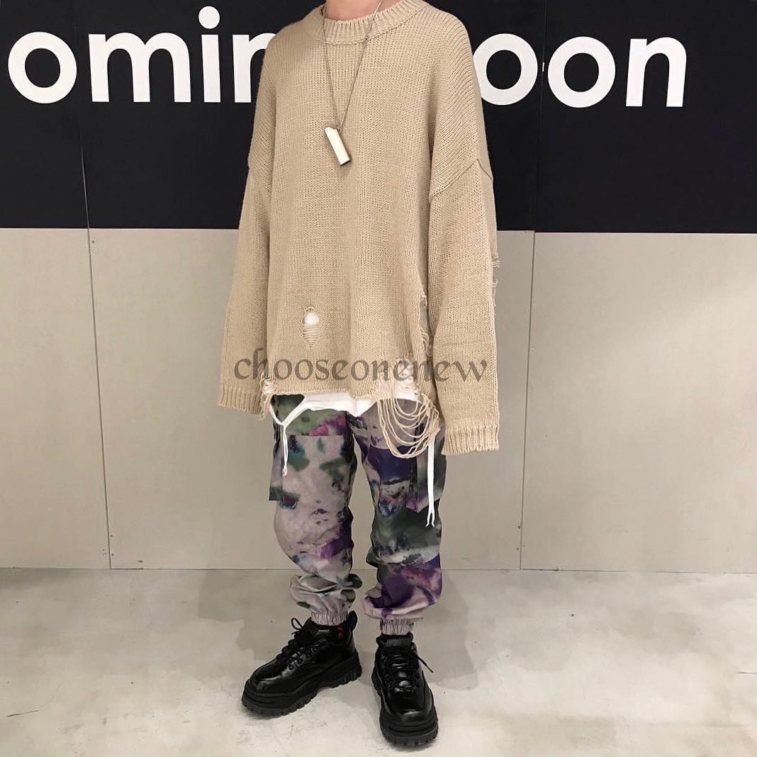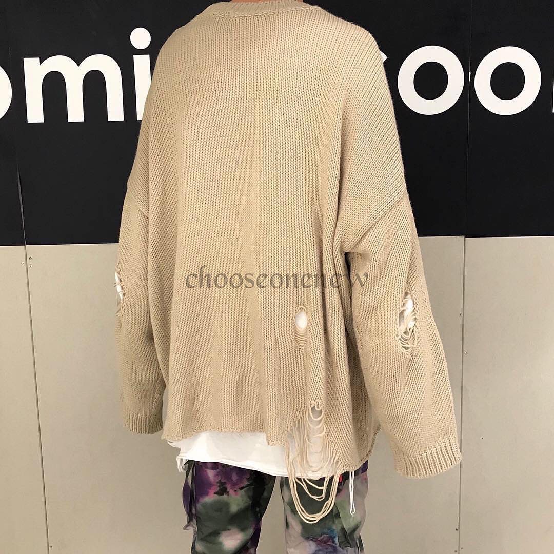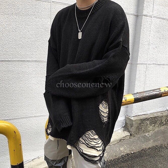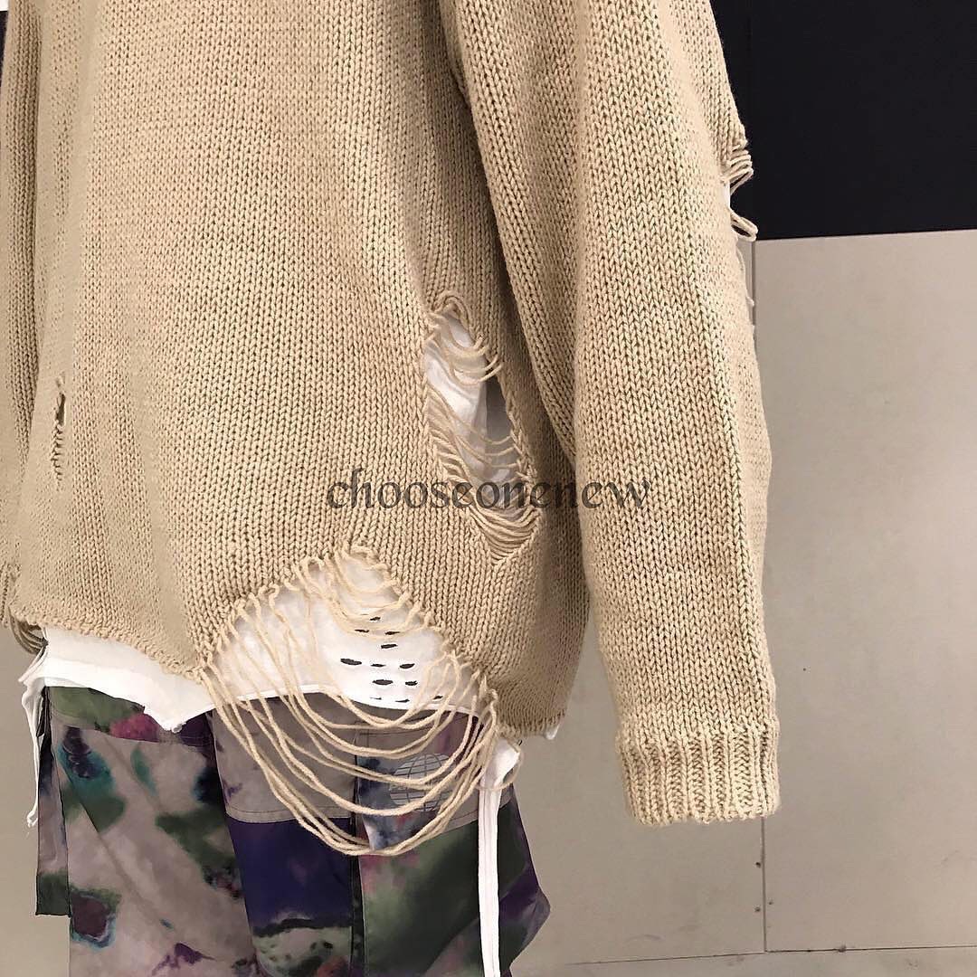 以下擺和手臂挖洞的破壞設計,使一般的素色毛衣不再單調乏味,再冷一點甚至拿來當作內搭使用也不成問題,寬鬆落肩的版型更是男女都可以著用