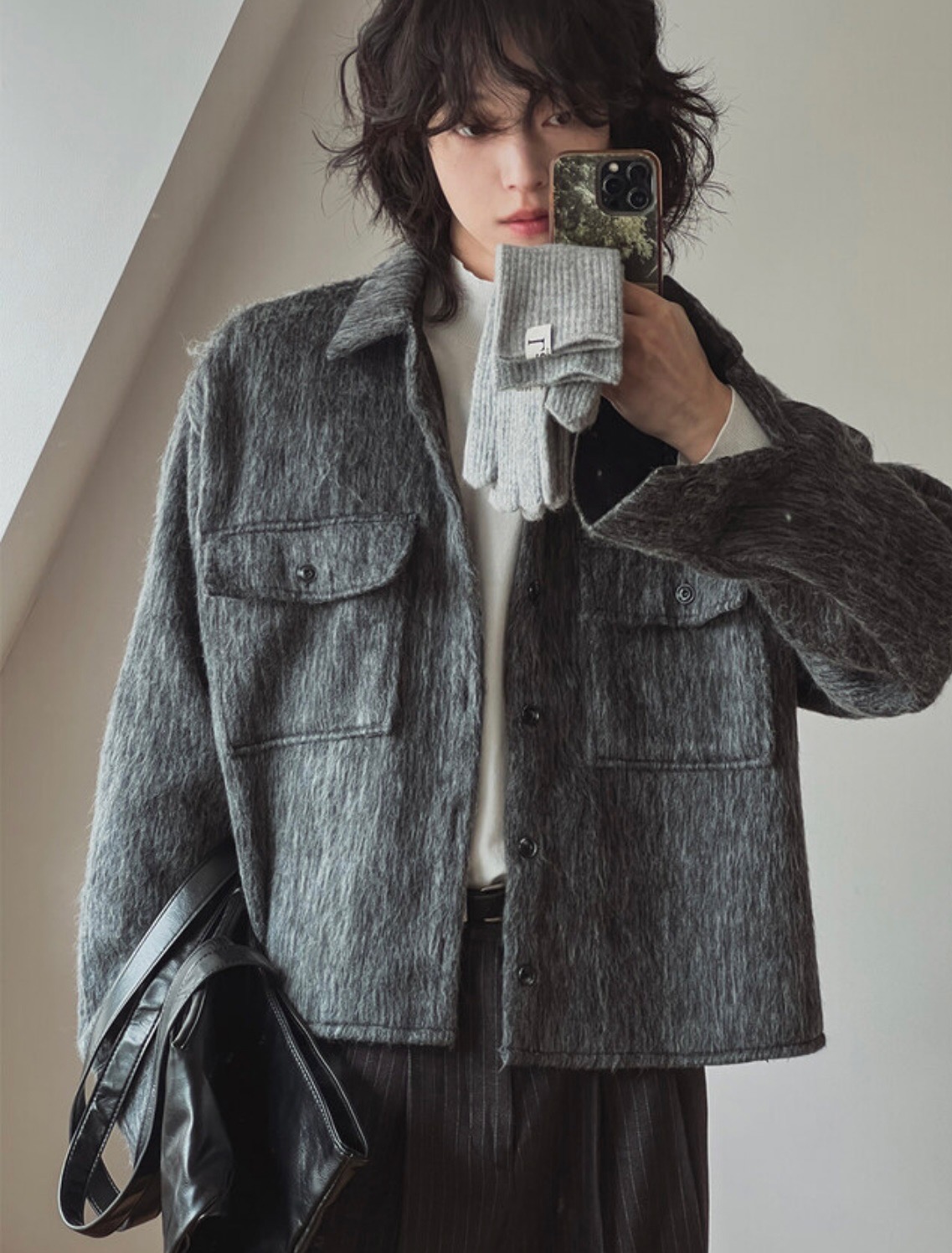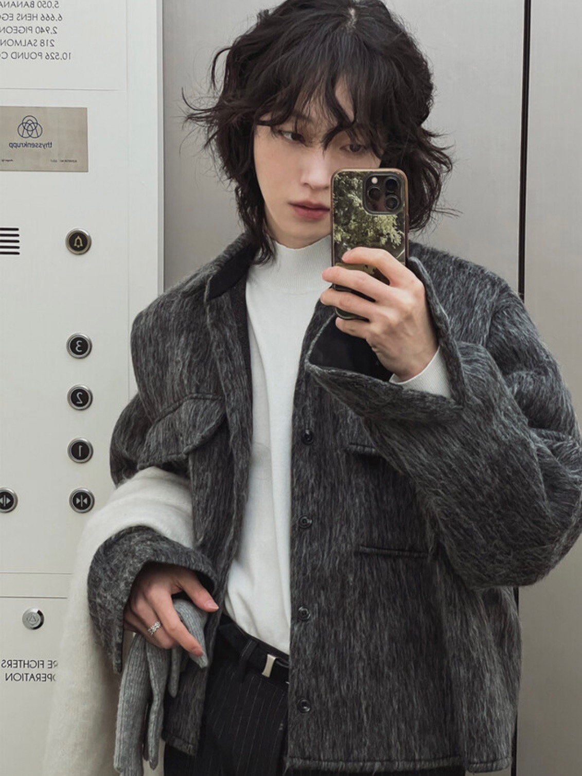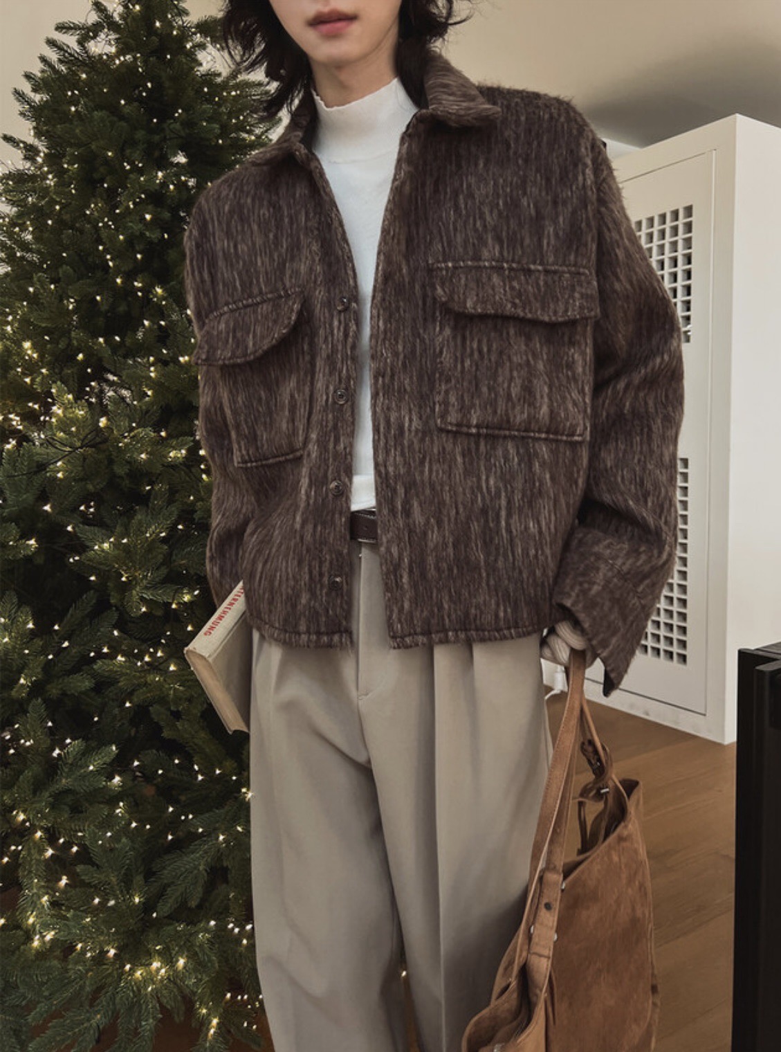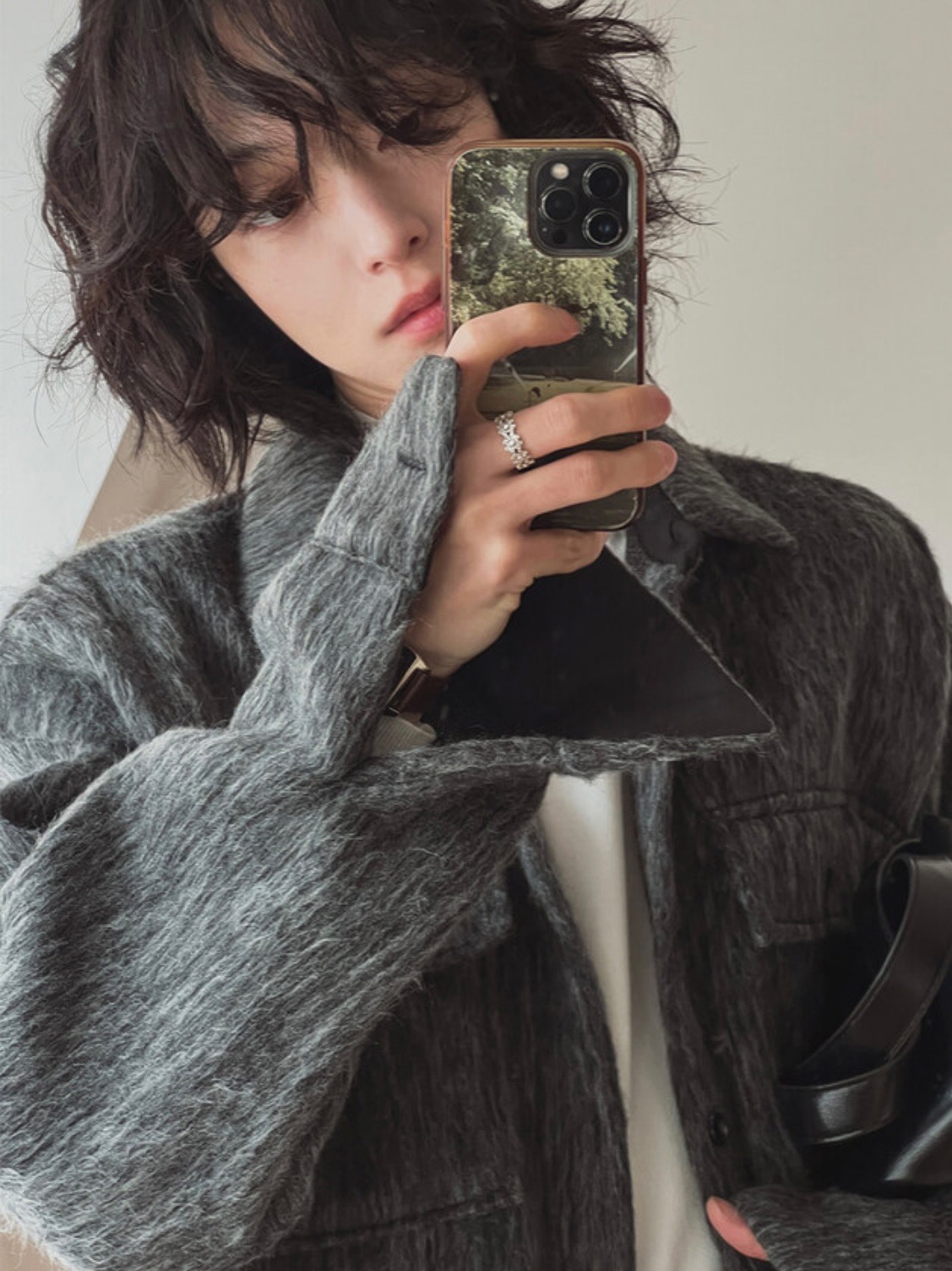 2PLAN 馬海毛 漸變 流線感 雙口袋 外套 (2color)