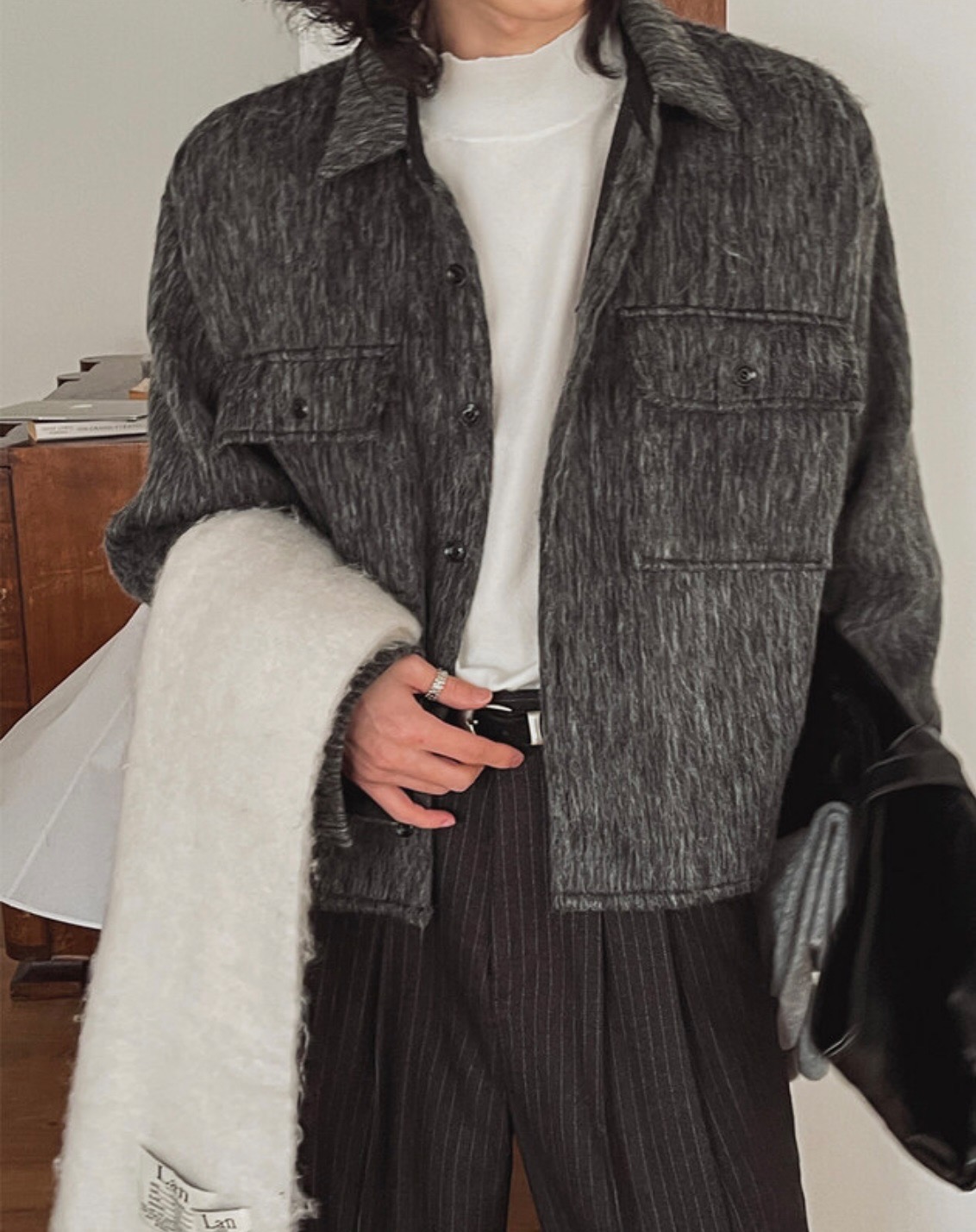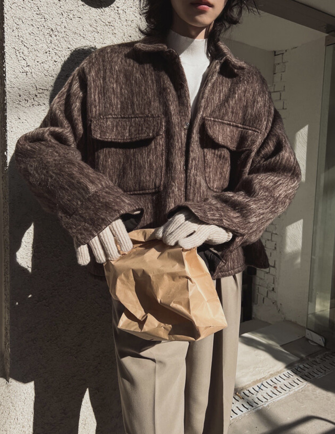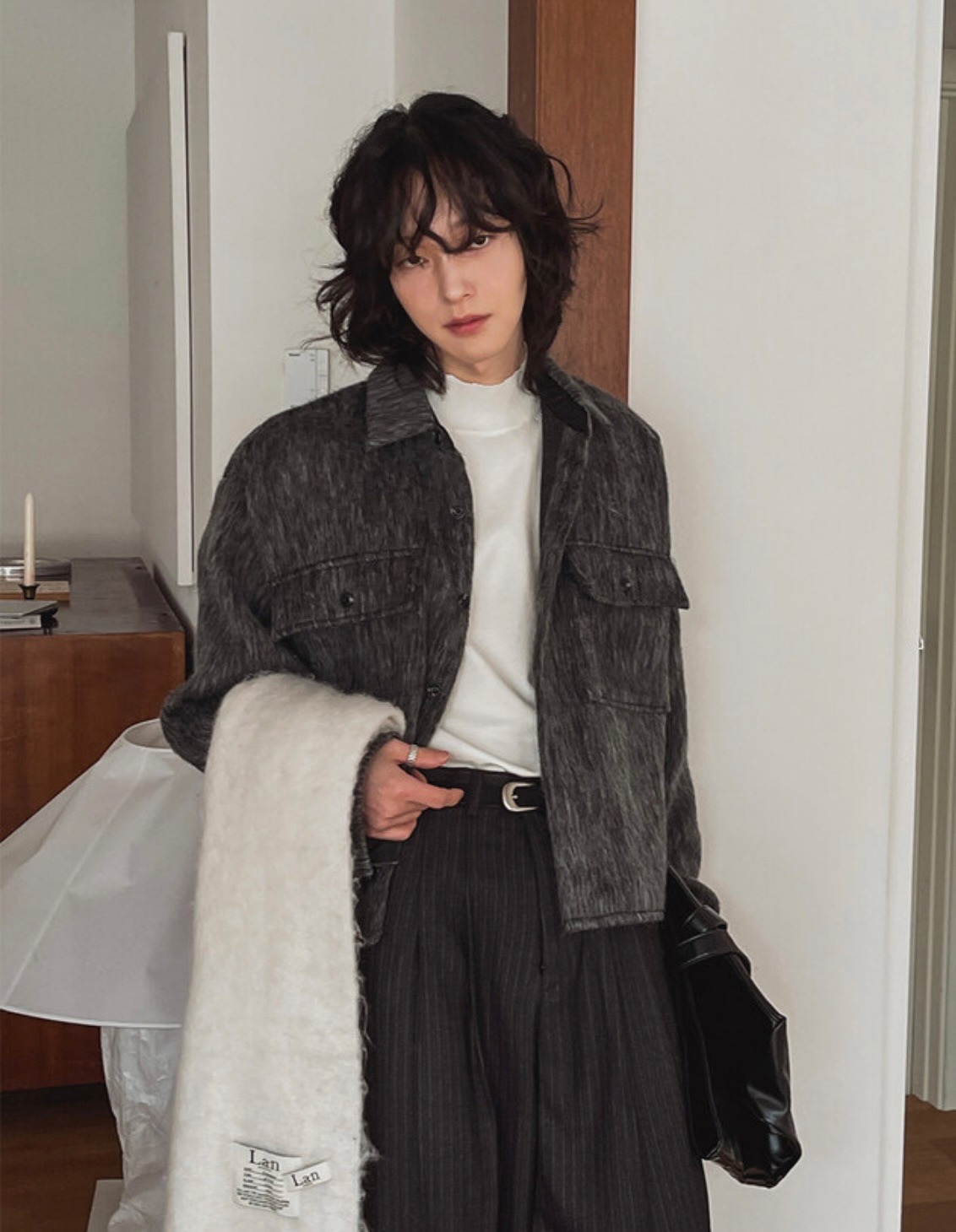 2PLAN 馬海毛 漸變 流線感 雙口袋 外套 (2color)