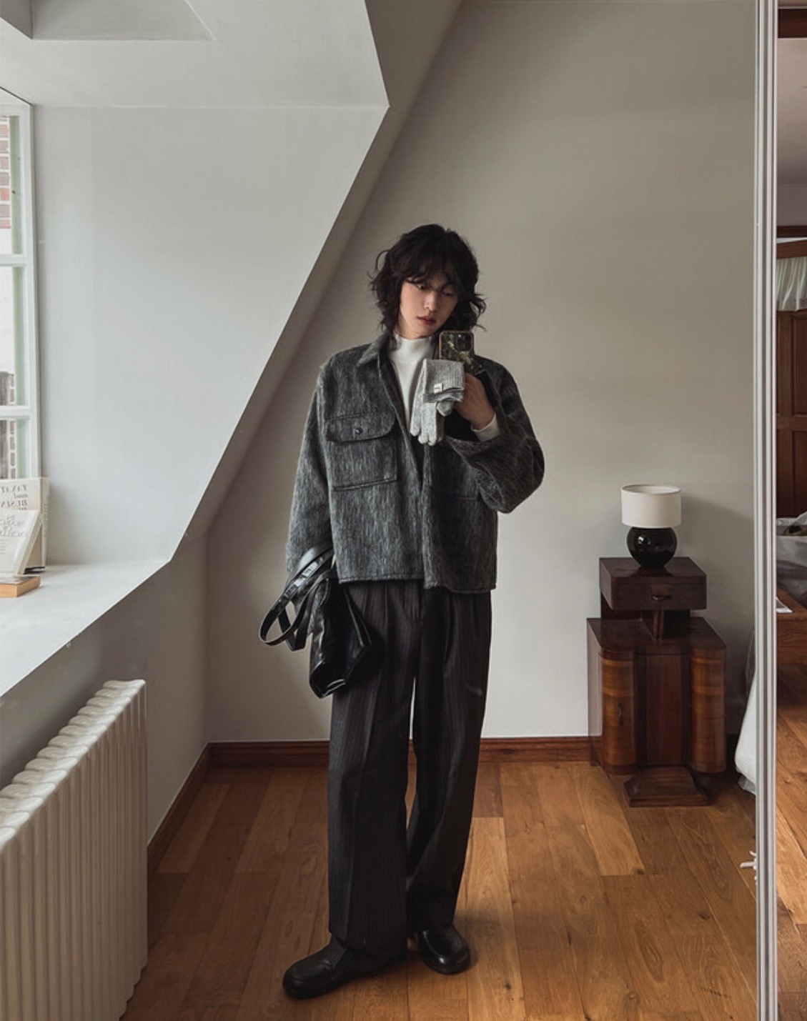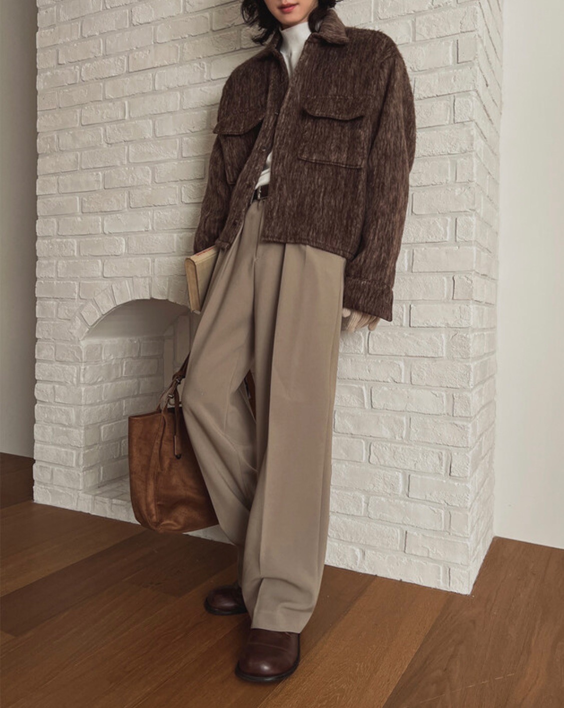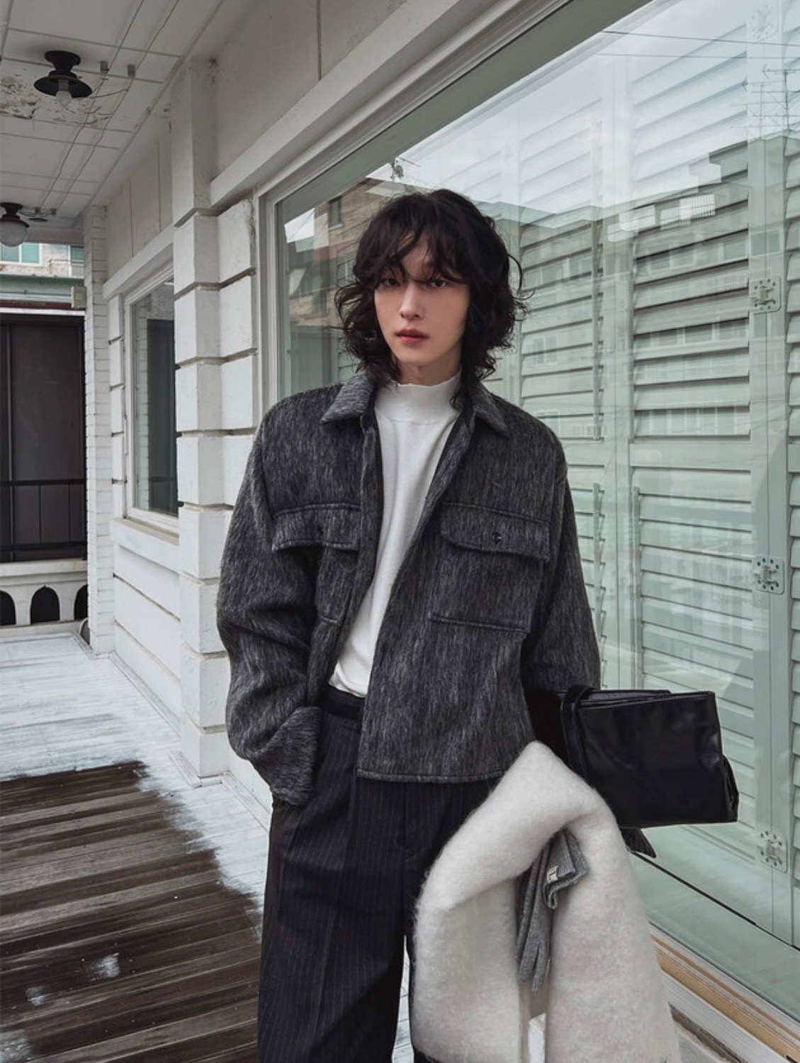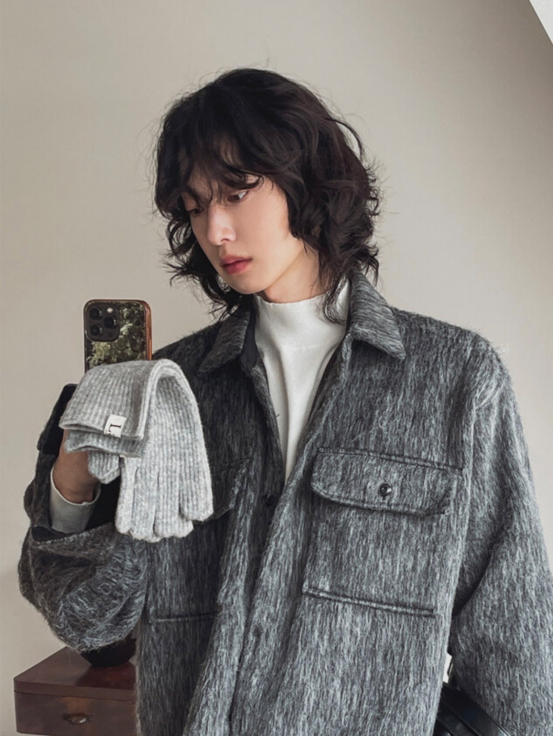 2PLAN 馬海毛 漸變 流線感 雙口袋 外套 (2color)
