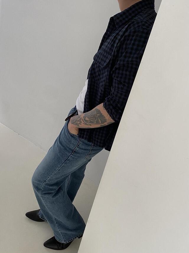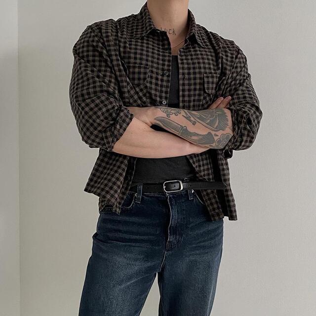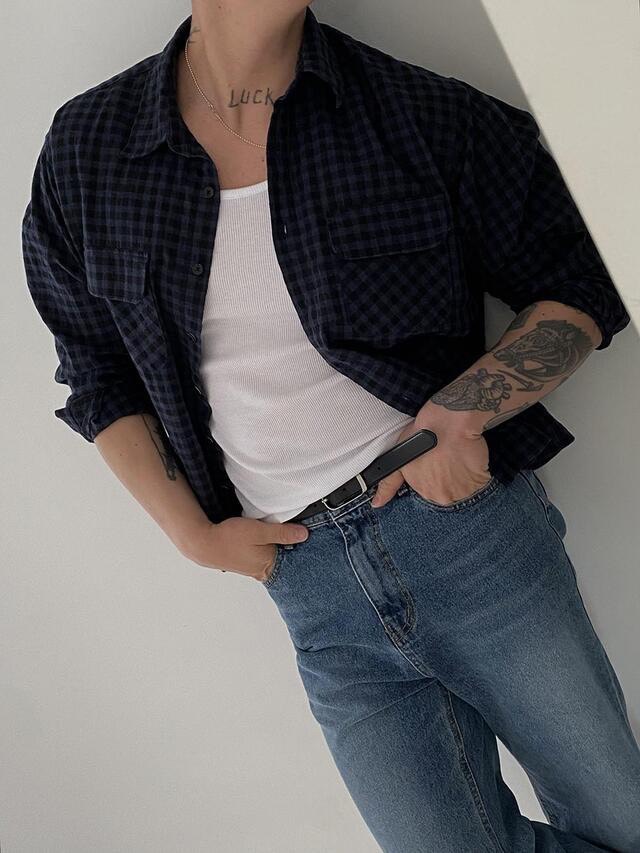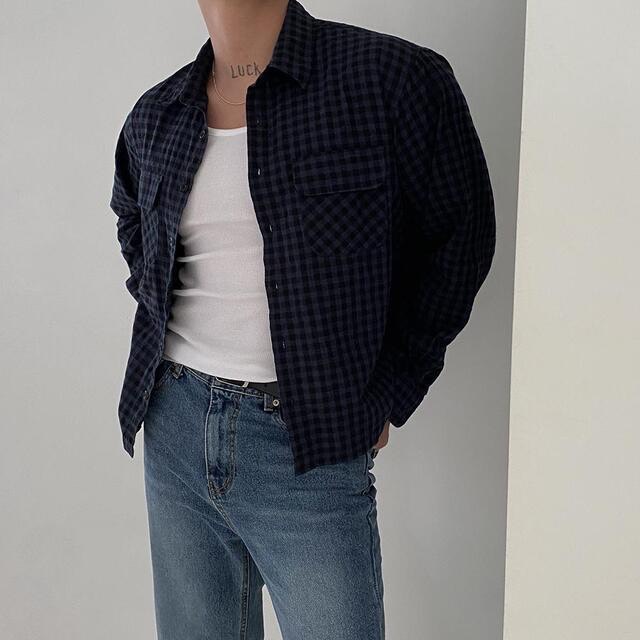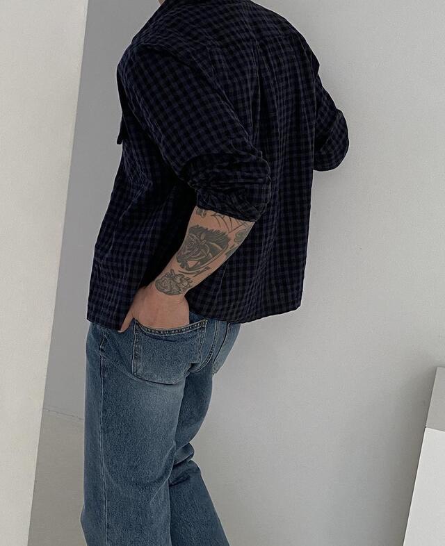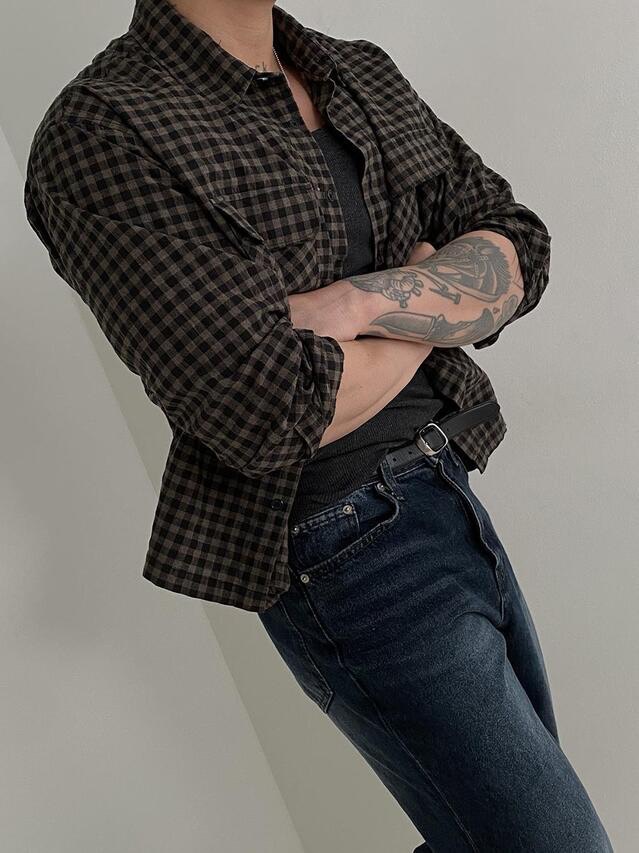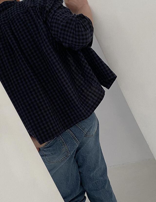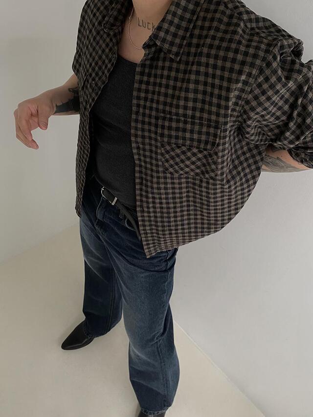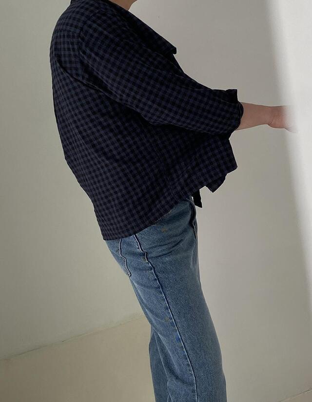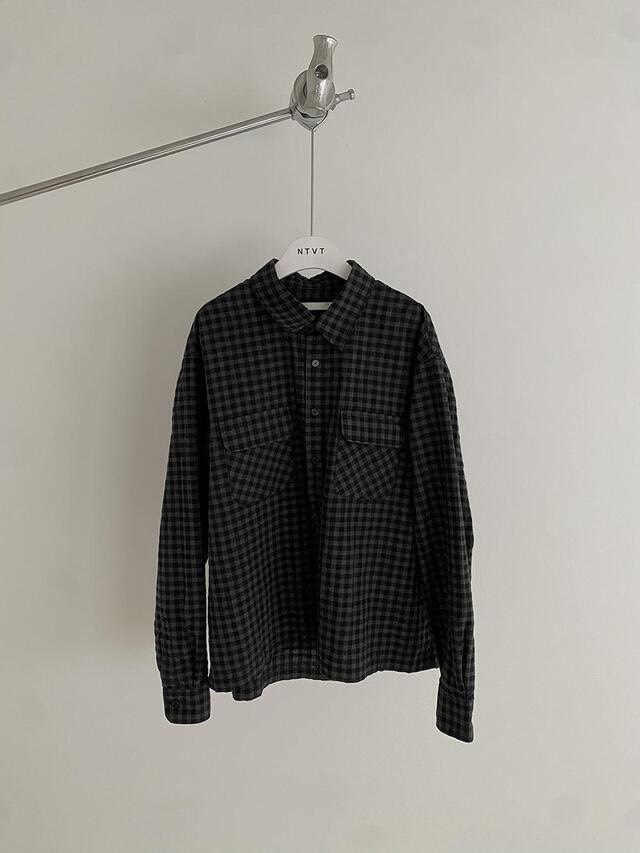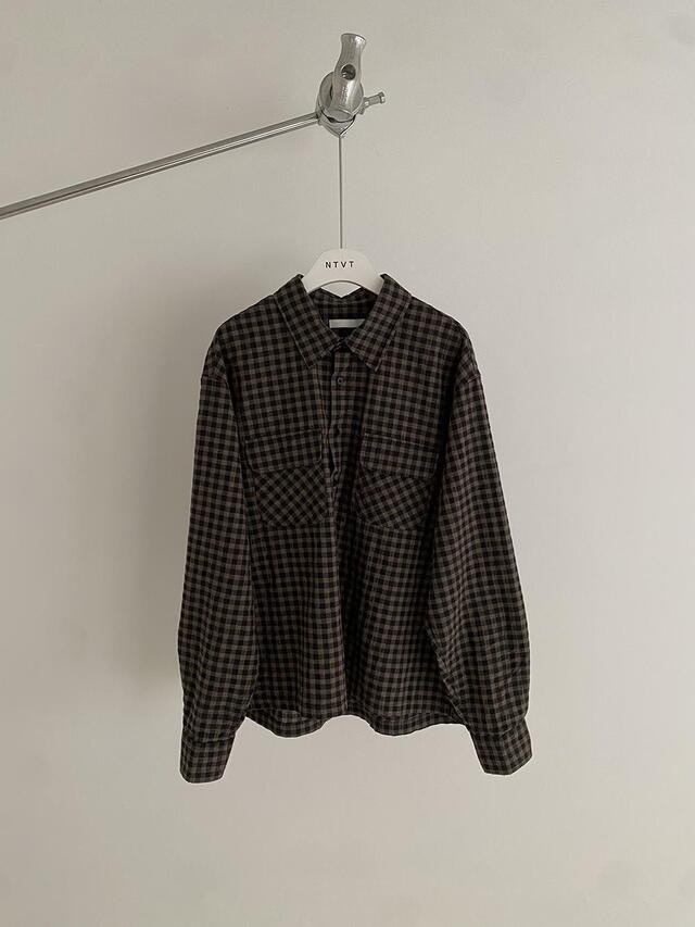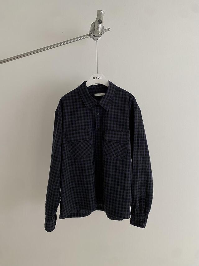 NTVT BOXY 細格紋 雙口袋 短版 薄長袖襯衫 (3color)